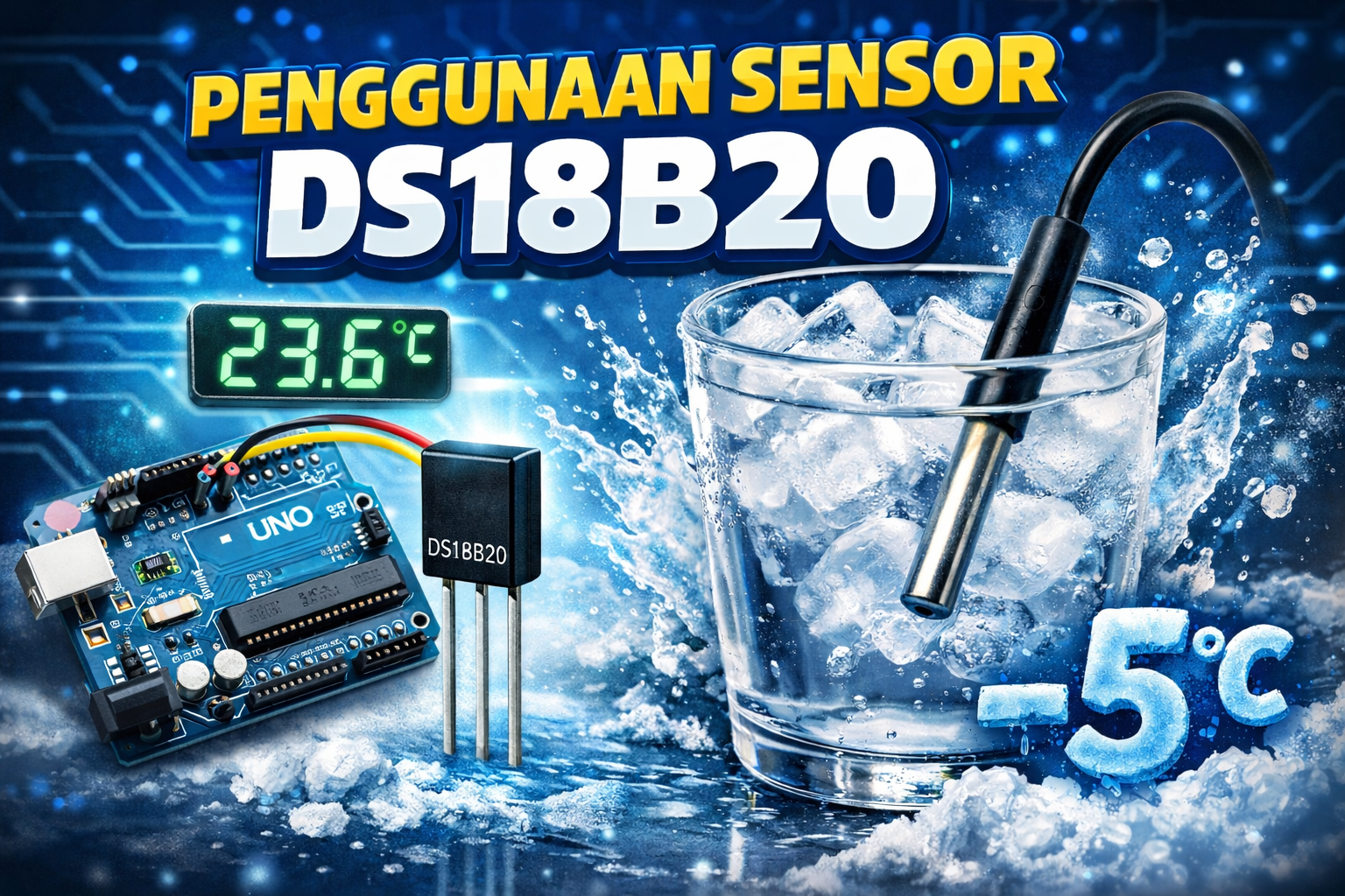 Pada tutorial ini akan menunjukan cara bagaimana menggunakan sensor suhu DS18B20 dengan board Arduino UNO. Kamu akan belajar bagaimana cara menyambungkan kabel senor, install library yang di perlukan dan mendapatkan hasil pembacaan sensor.