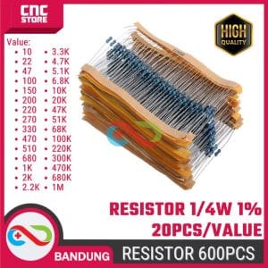 Paket 600PCS Resistor 1/4W 1 Metal Film – 30 Nilai Resistor per 20PCS untuk Proyek Elektronik