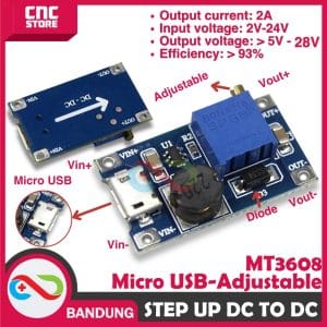 ADJUSTABLE STEP UP MT3608 BOOST DC MICRO USB 2A 2V-24V TO 5V-28V MODULE