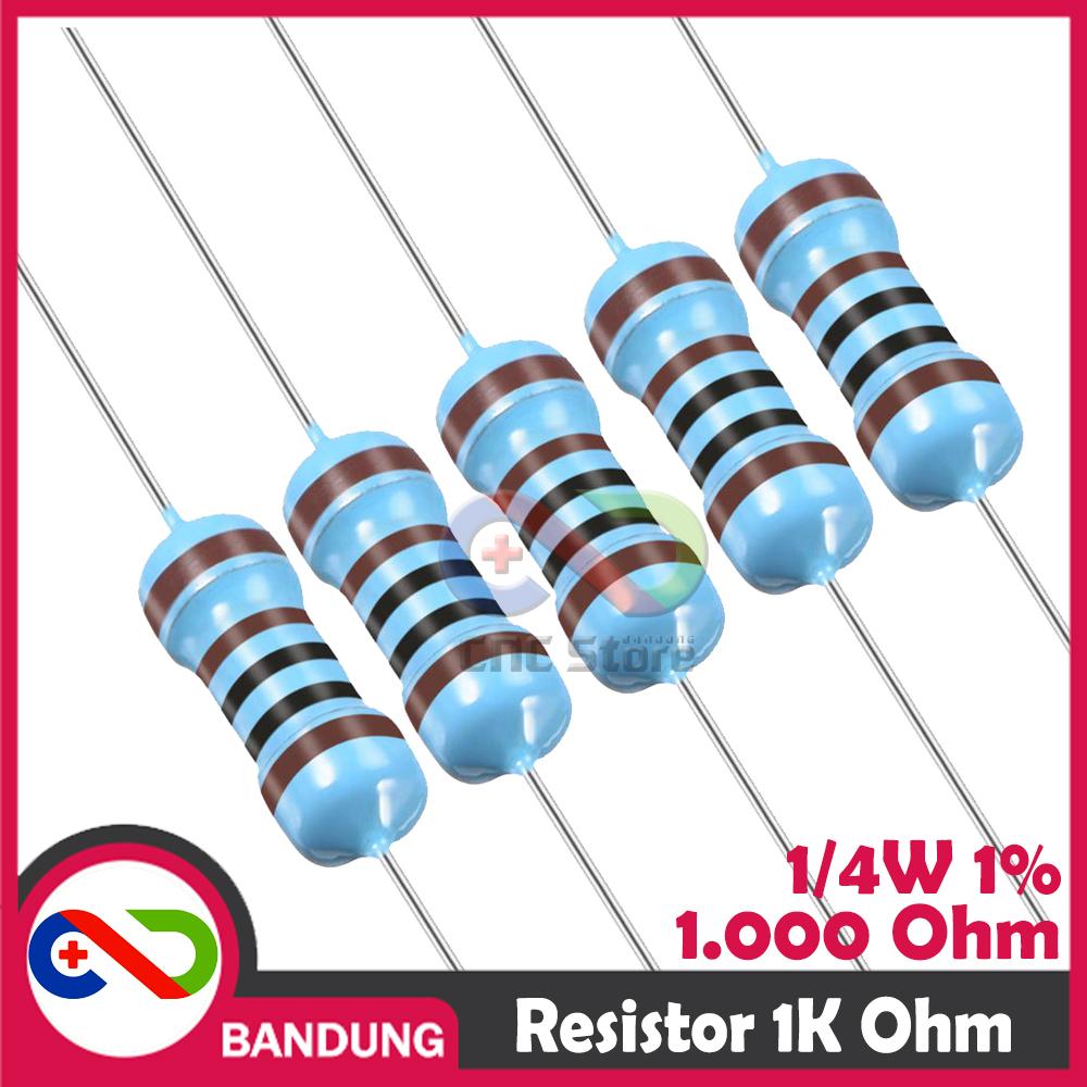 10pcs Resistor 1kOhm dengan daya 1/4watt dan toleransi 1%. Nggak usah ane