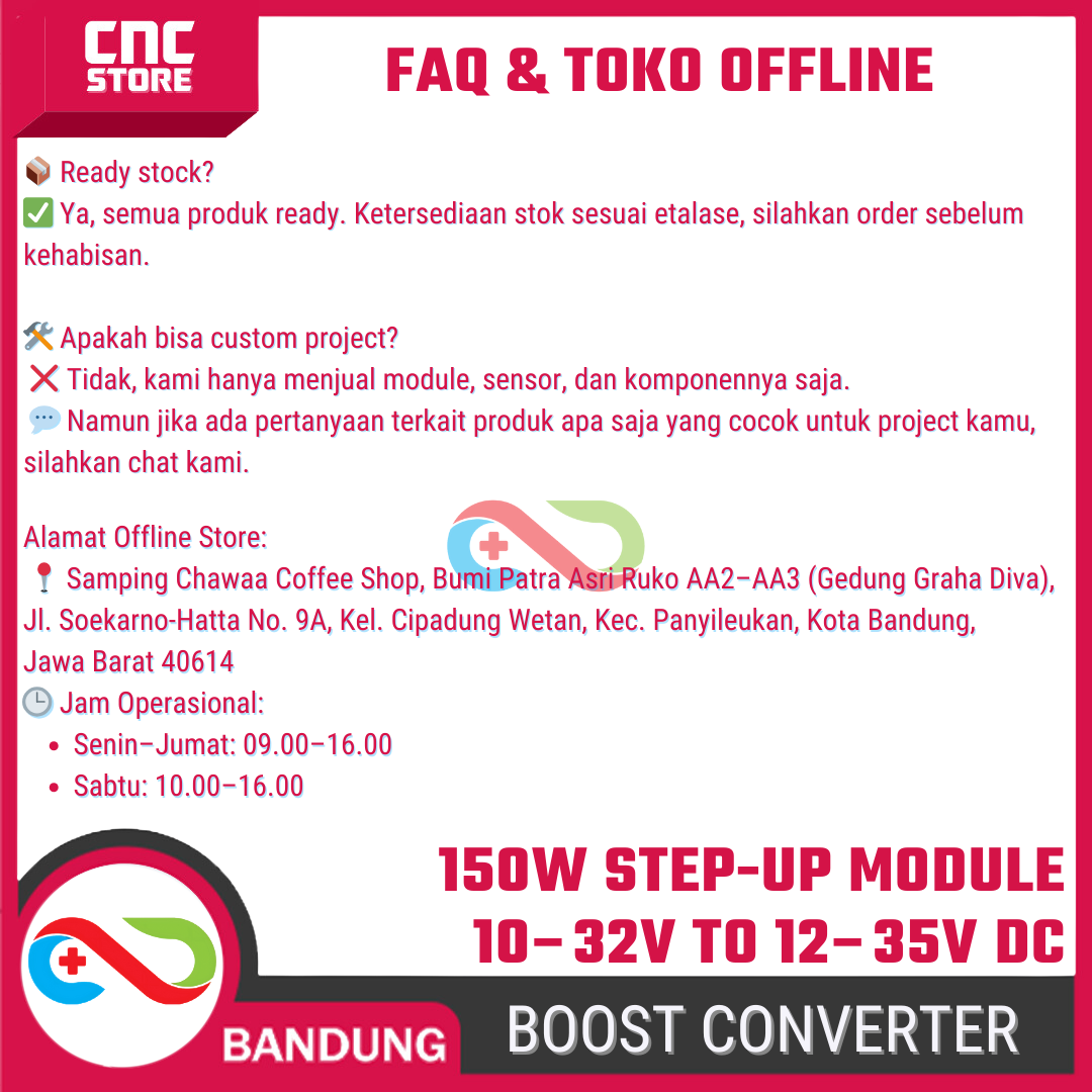 1x Module DC Step-Up 150W Boost Converter 6A – Boost Converter 10–32V to 12–35V