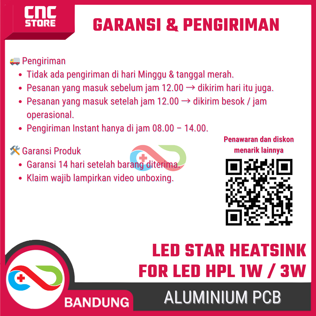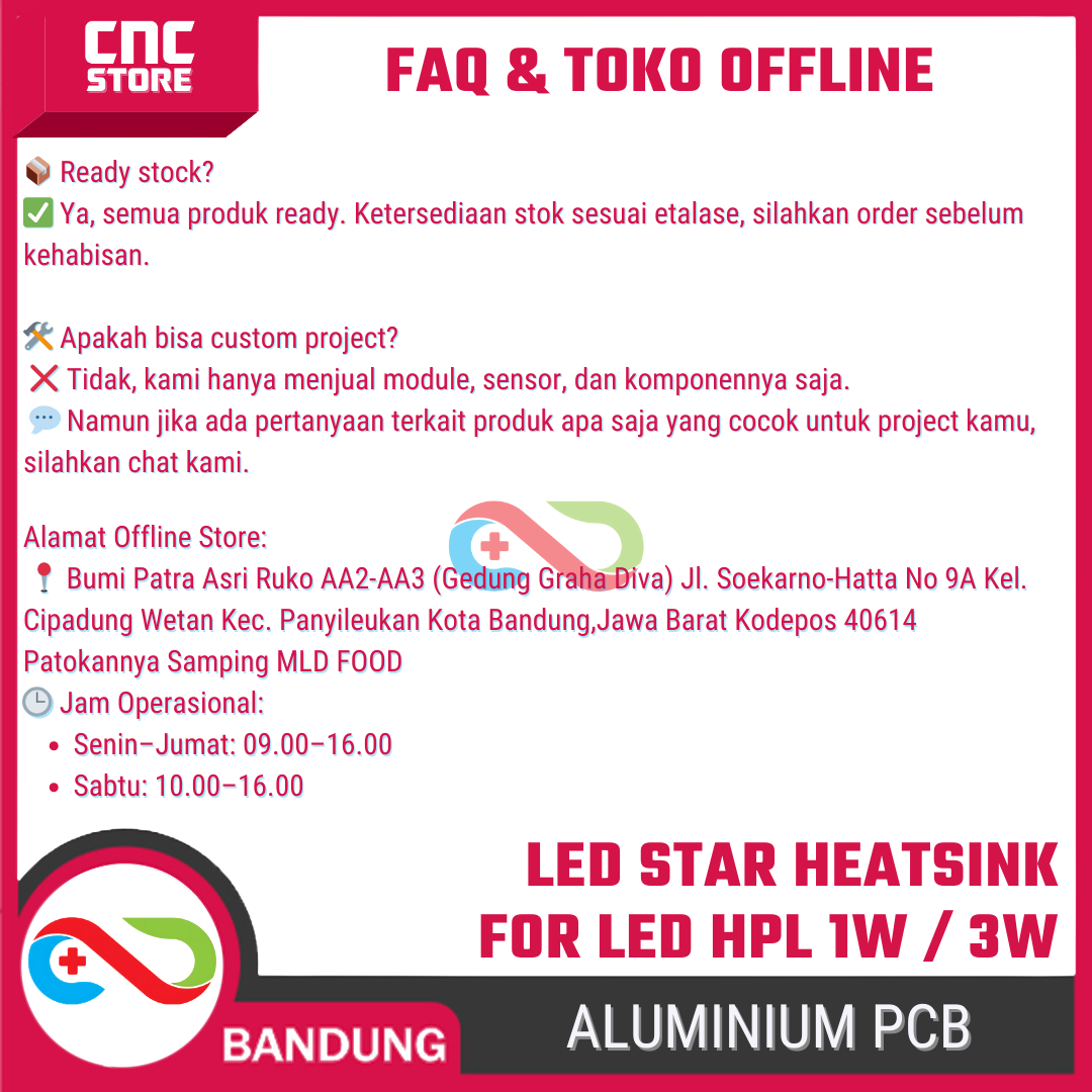 Heatsink Star Aluminium PCB adalah papan aluminium berbentuk bintang yang dirancang khusus untuk LED HPL 1W dan 3W. PCB ini berfungsi sebagai media pemasangan LED sekaligus penyebar panas (heat spreader) agar LED bekerja lebih stabil dan awet.
