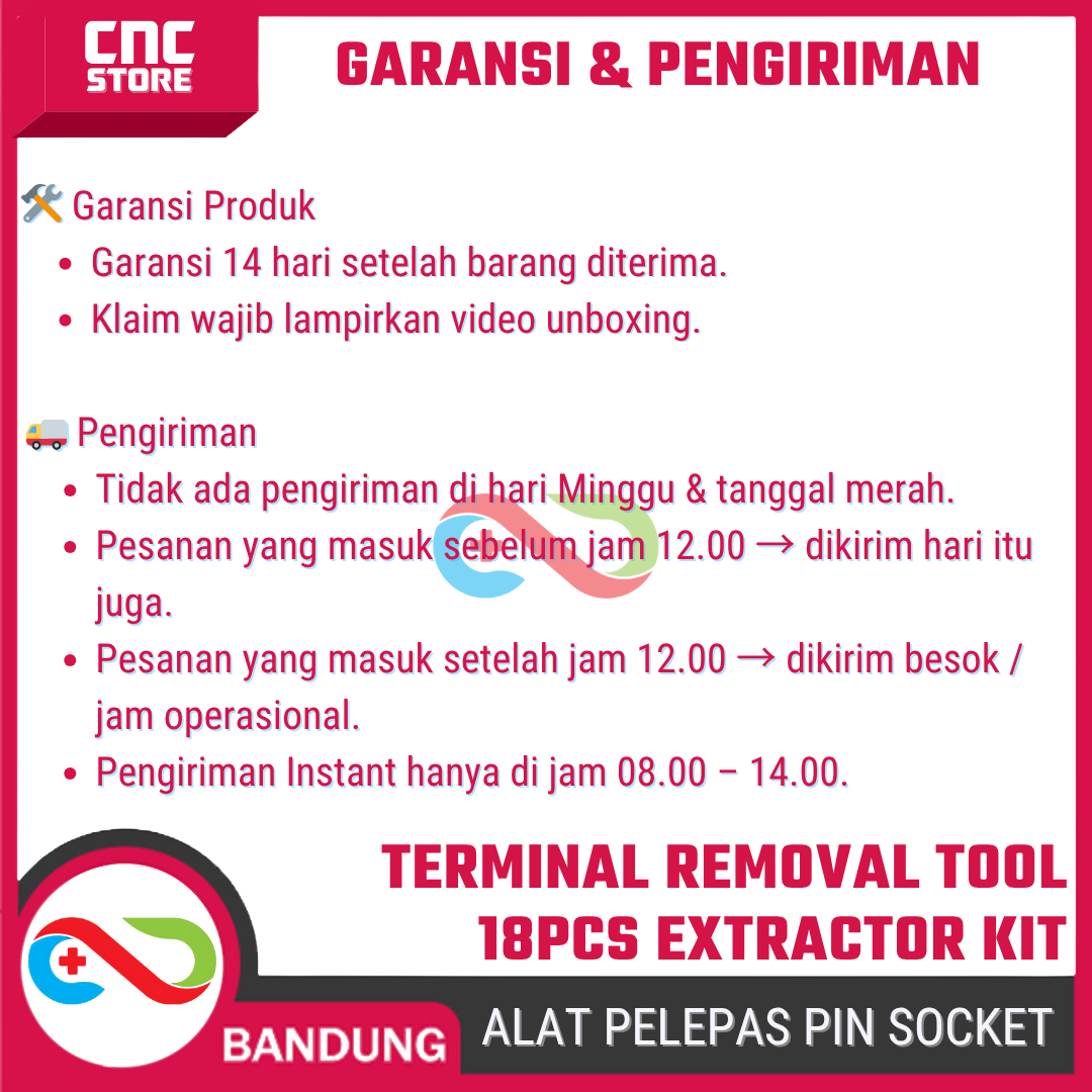 Set ini hadir dengan 18 pcs alat berbeda, sehingga cocok untuk berbagai ukuran pin dan socket, baik di mobil, motor, elektronik, maupun proyek DIY. Materialnya kokoh dan tahan lama, siap untuk penggunaan profesional maupun hobi.