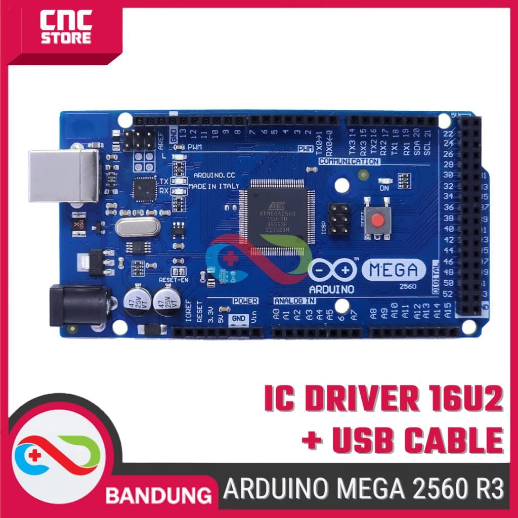 MEGA 2560 ini di desain untuk project agan yang lebih kompleks. Dengan 54 digital I/O, 16 input analog, dan memori Flash yang lebih besar untuk diisi sketch, board ini cocok untuk project printer 3D ataupun aplikasi robotik.