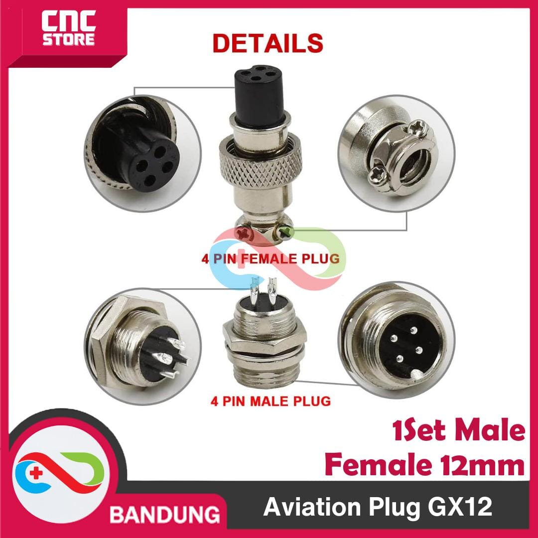 1 x AVIATION PLUG CONNECTOR CB GX12 12MM SET MALE FEMALE – 4 PIN