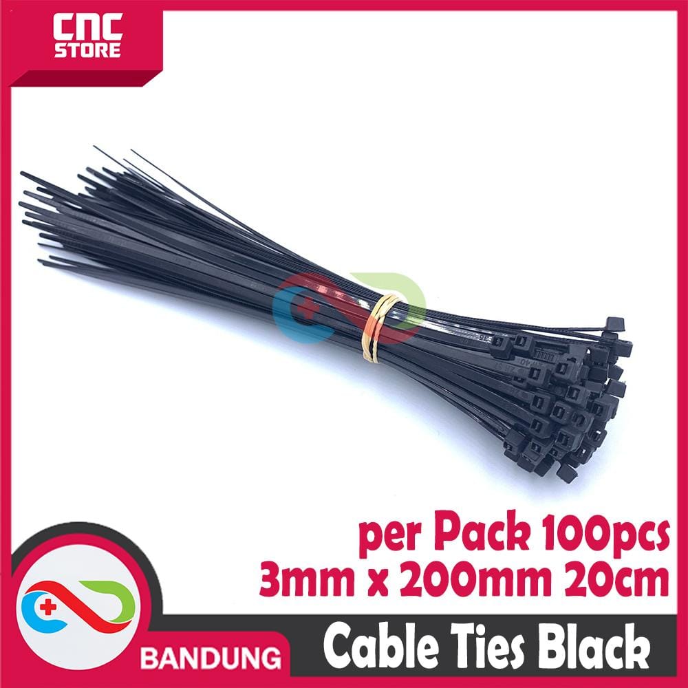 – 1x CABLE KABEL TIES TIS 3x200MM 20CM – BLACK PACK 100PCS