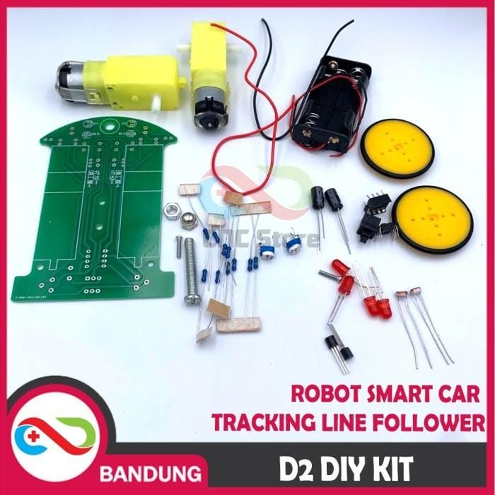 Model Basic Tanpa microcontroller/tanpa pemrograman cukup dengan IC LM393 sudah cukup untuk mengontrol robot Line follower ini, Smart Car ini belum dirakit (DIY KIT Model) jadi agan bisa rakit sendiri mengikuti buku panduannya yah. Sangat Cocok untuk wahana Edukasi Robotika buat anak-anak juga bisa sekalian melatih motorik anak dianjurkan untuk anak diatas 10 tahun lebih .