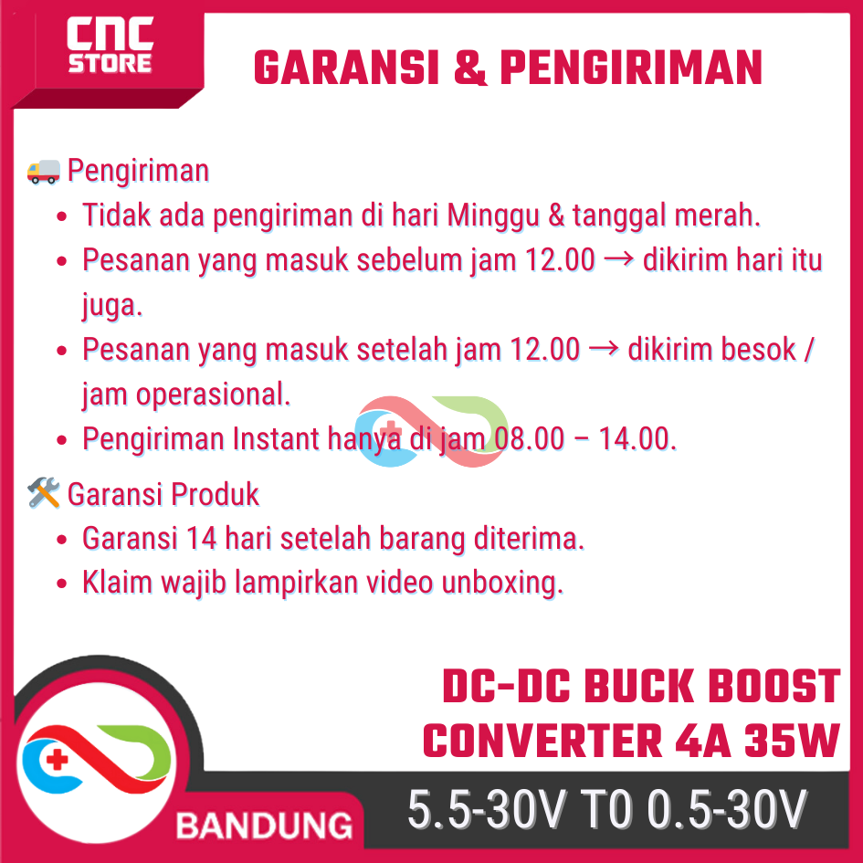 Modul DC-DC Buck Boost ini adalah converter serbaguna yang bisa bekerja sebagai step-up (boost) maupun step-down (buck) dalam satu board. Artinya, tegangan output bisa diatur lebih tinggi atau lebih rendah dari tegangan input.