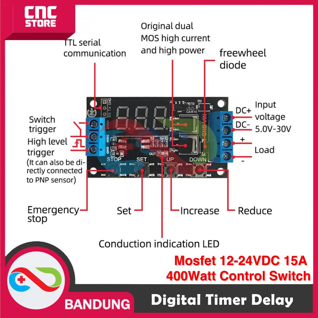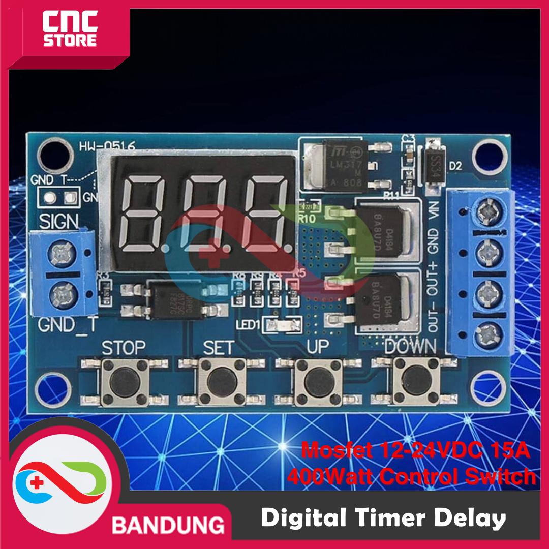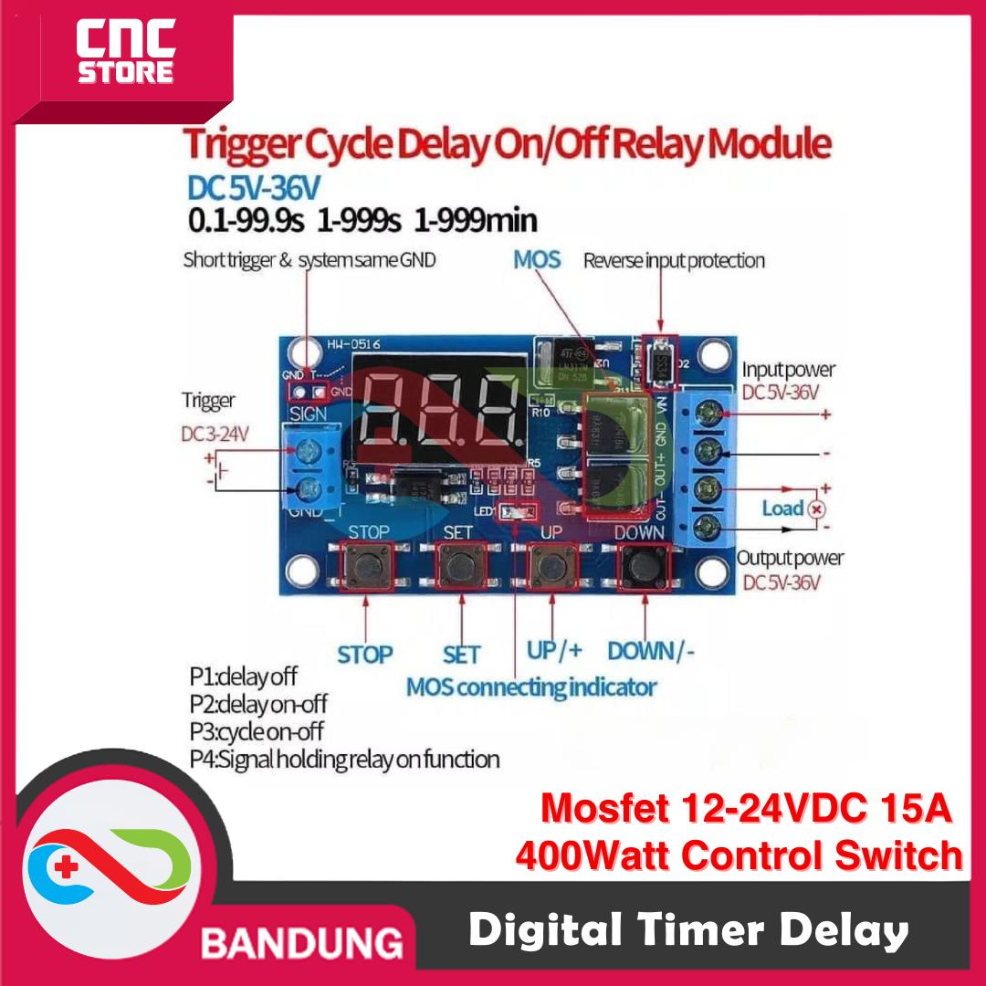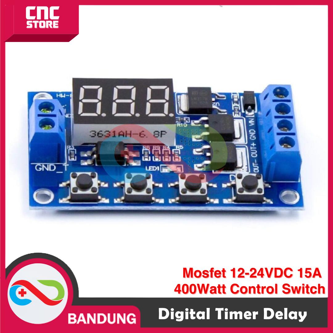 Digital Timer Delay On-Off MOSFET adalah sebuah perangkat kontrol waktu digital yang dirancang untuk mengatur pengaktifan dan pematian perangkat atau beban listrik dengan menggunakan teknologi MOSFET. Perangkat ini bekerja pada rentang tegangan 12-24V DC dan mampu mengendalikan beban hingga 15A atau 400 watt.?