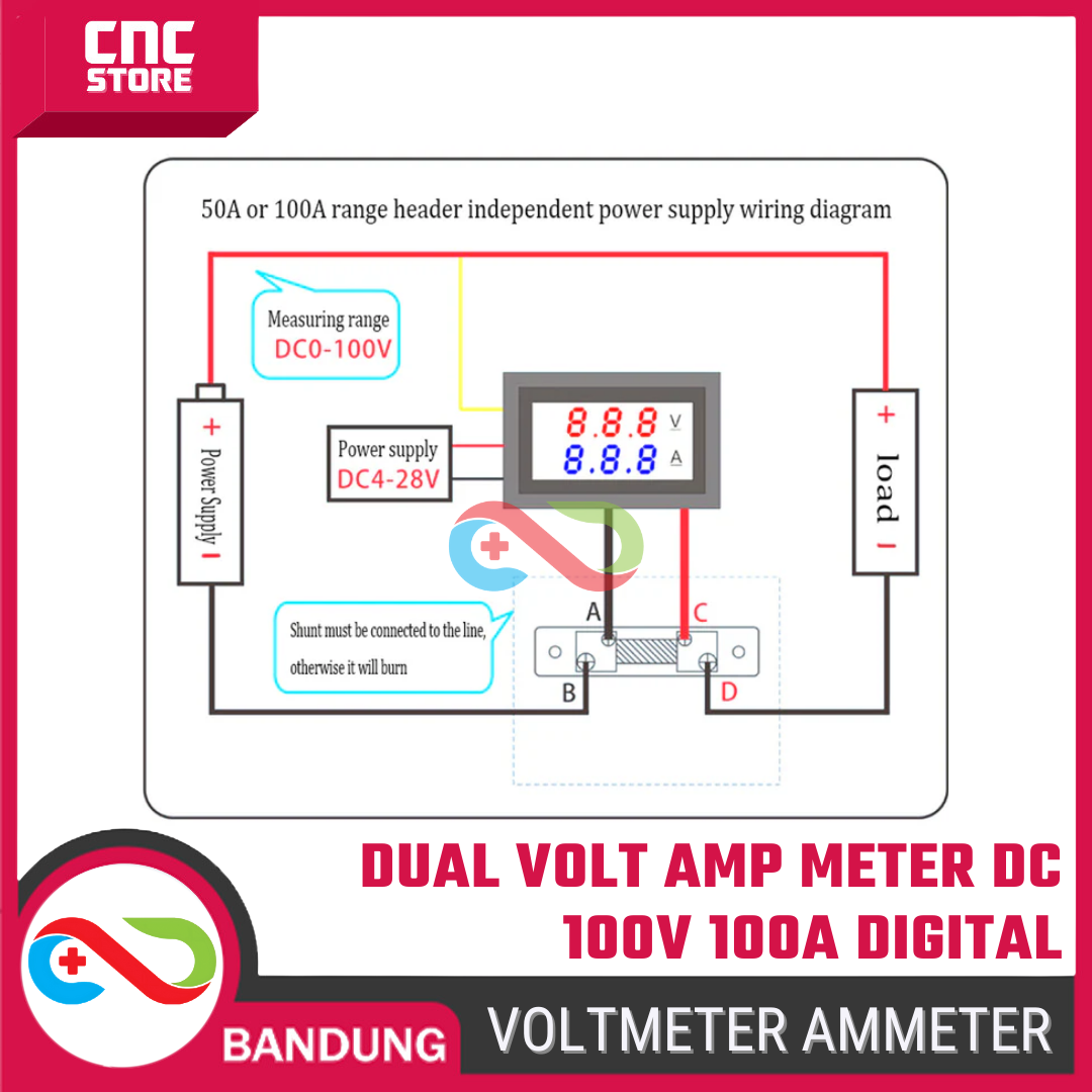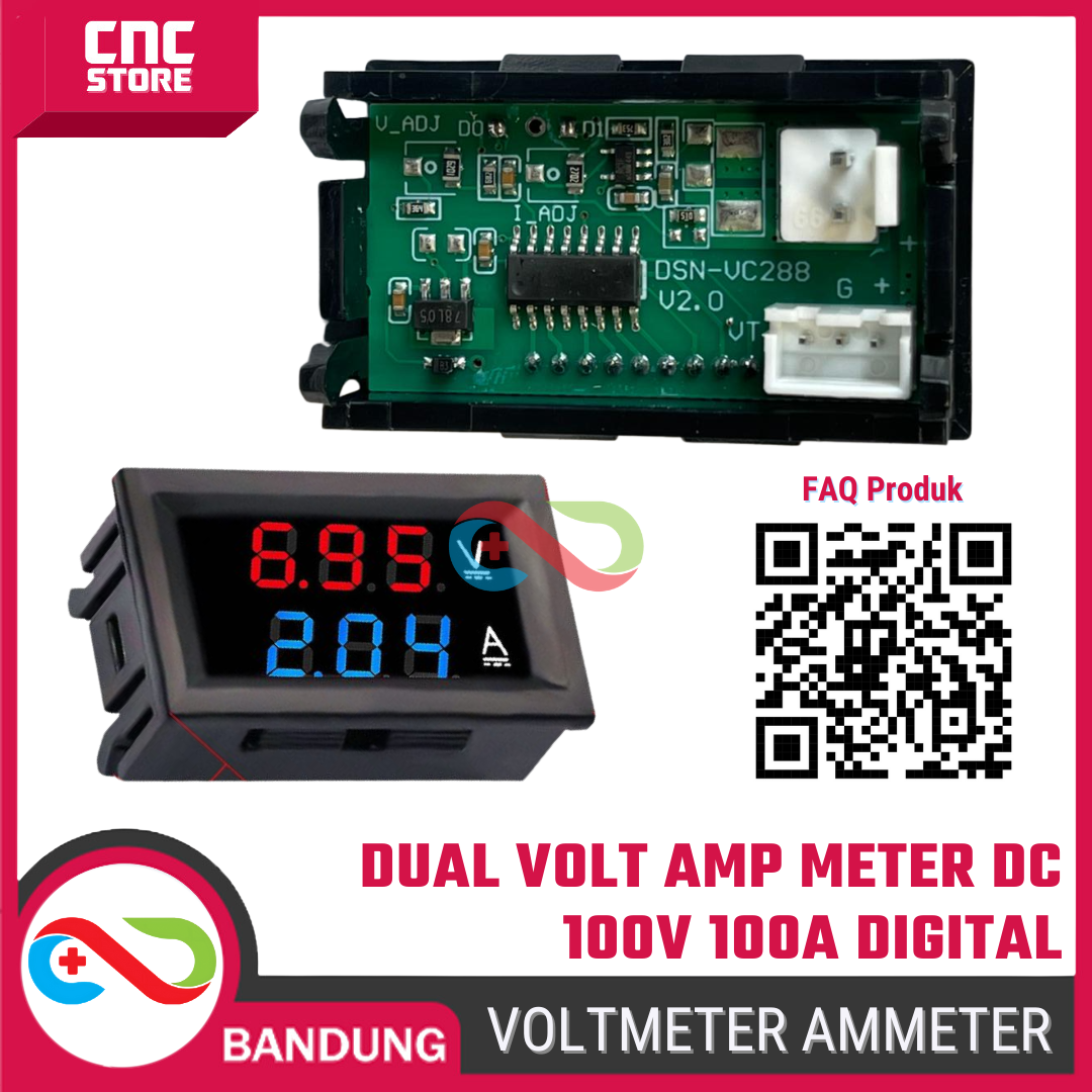 Dual Mini Voltmeter Amperemeter Digital adalah modul panel meter DC yang mampu menampilkan tegangan (V) dan arus (A) secara bersamaan dalam satu modul display. Alat ini menggunakan resistor shunt eksternal untuk pengukuran arus besar hingga 100A, sehingga lebih stabil dan aman dibanding modul tanpa shunt.