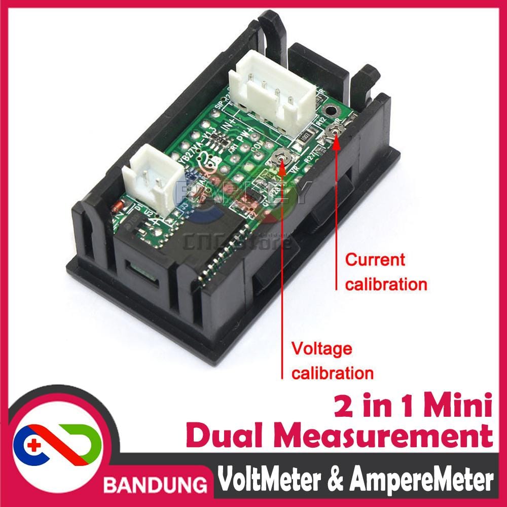 tegangan ditampilkan pada seven segmen 0.28″ atas berwarna merah. Nilai arus