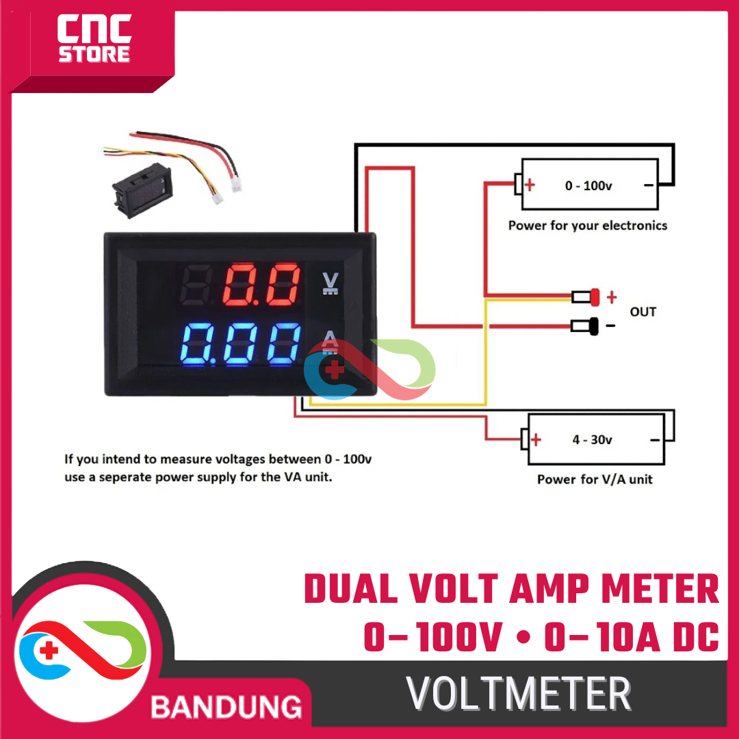 1x Dual Volt Amp Meter 0–100V 0–10A