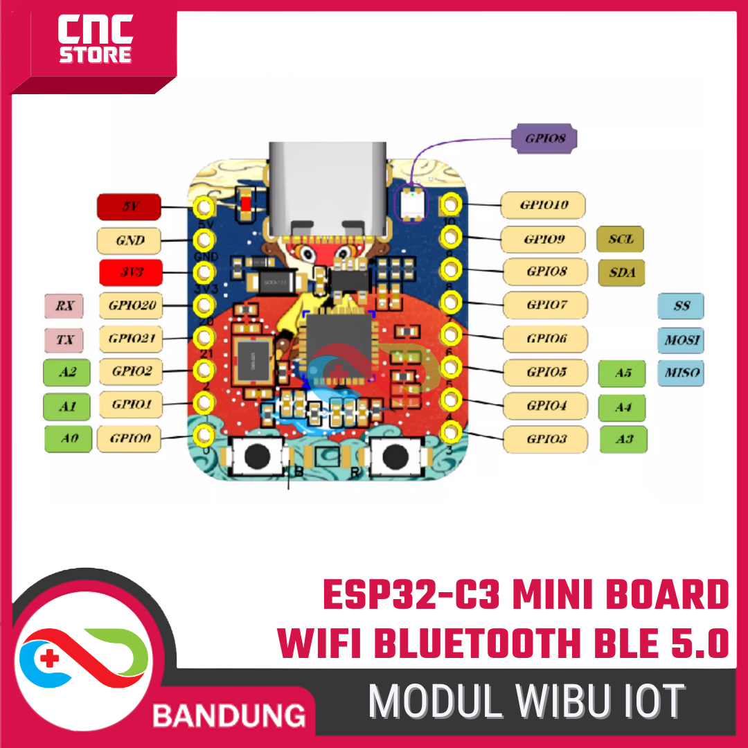 1x ESP32-C3 Mini Development Board – Modul WiFi Bluetooth BLE 5.0 dengan Warna Silk WIBU (limited edition)