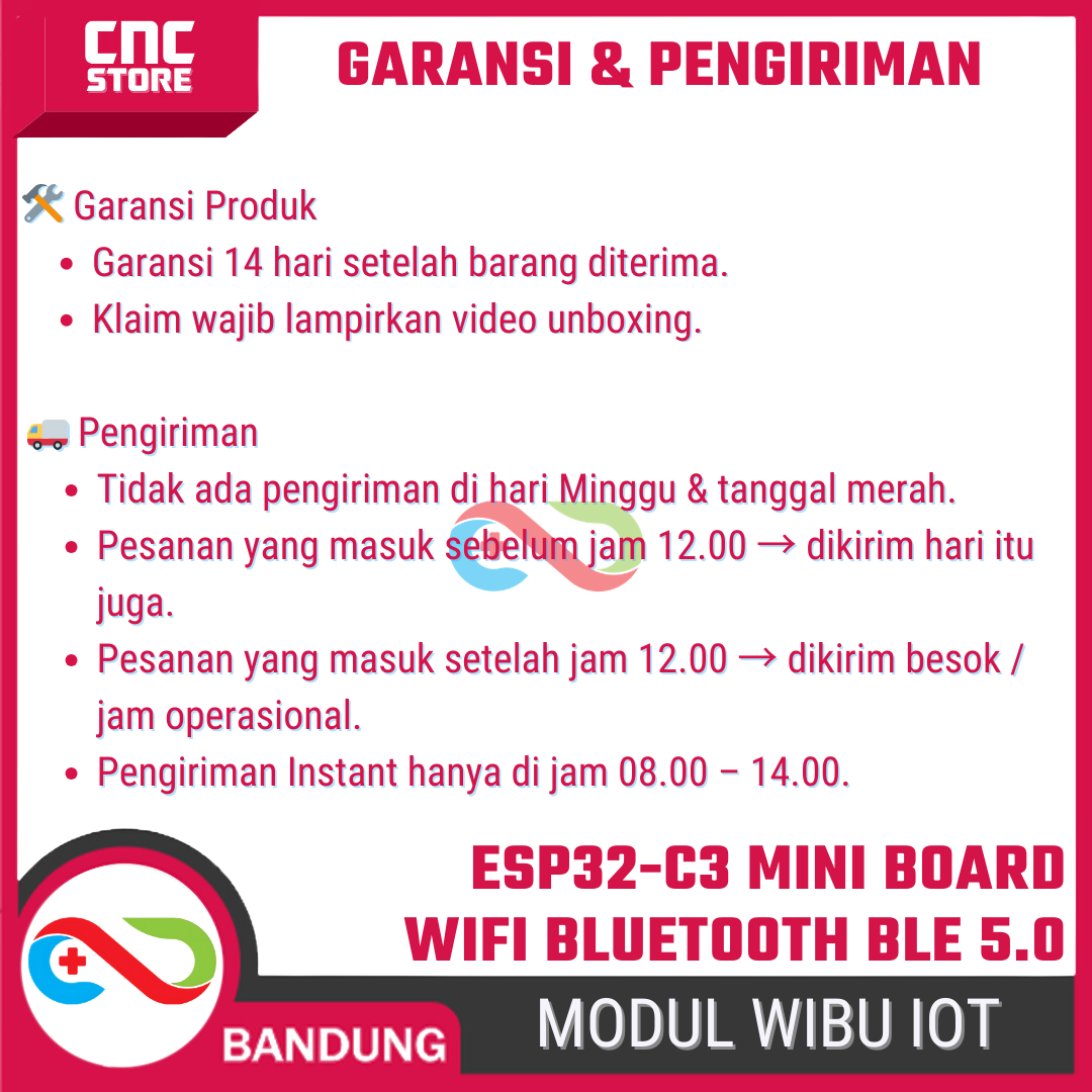 ESP32-C3 Mini WIBU Edition adalah development board berbasis chip ESP32-C3, generasi terbaru keluarga ESP dengan arsitektur RISC-V 32-bit. Selain performa tinggi dan konsumsi daya rendah, board ini sudah mendukung WiFi 2.4 GHz dan Bluetooth 5.0 Low Energy (BLE) yang stabil banget buat komunikasi jarak jauh.