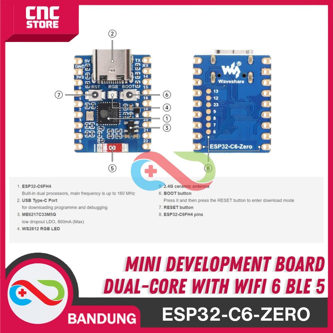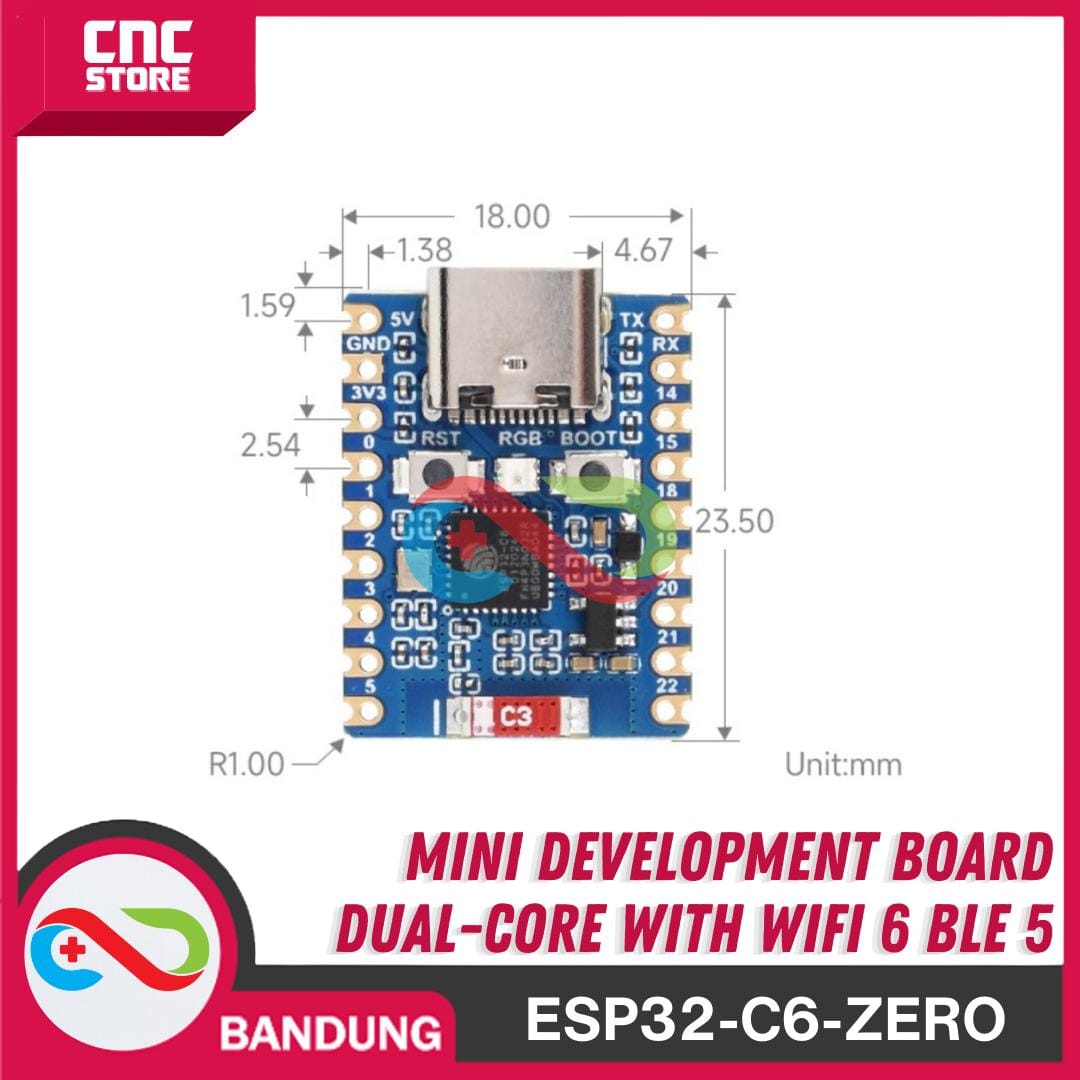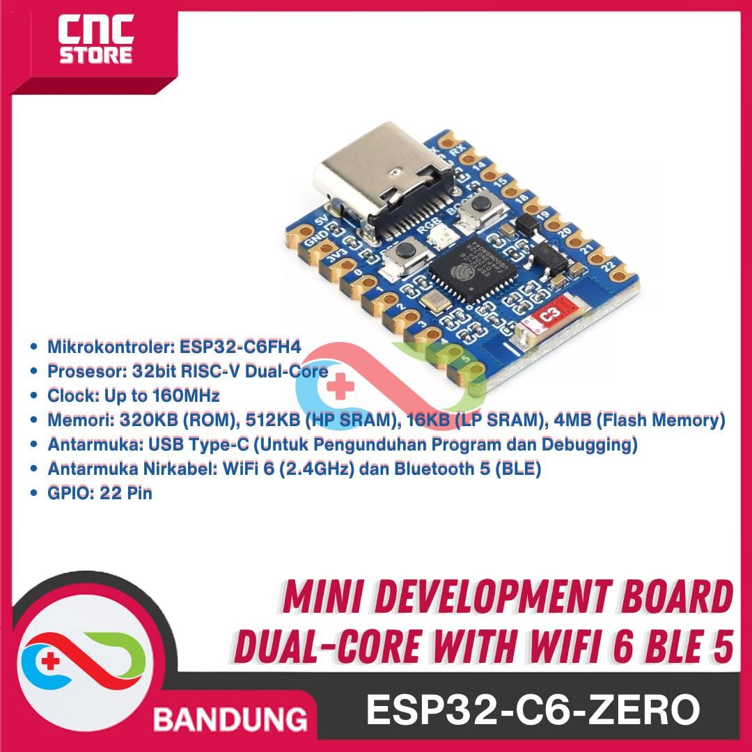 ESP32-C6 Mini Development Board merupakan papan pengembangan atau development board berbasis chip mikrokontroler ESP32-C6FH4 Dual-Core yang dapat berjalan pada frekuensi hingga 160 MHz. Board ini juga sudah support WiFi 6 serta Bluetooth Low Energy (BLE) 5.?