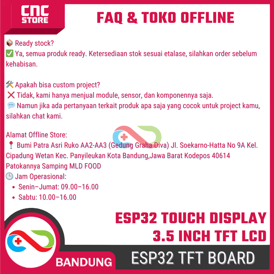 ESP32 Development Board dengan Layar Sentuh 3.5 Inch adalah papan pengembangan berbasis ESP32 yang sudah terintegrasi dengan layar TFT warna berukuran 3.5 inci dan fitur touch screen.