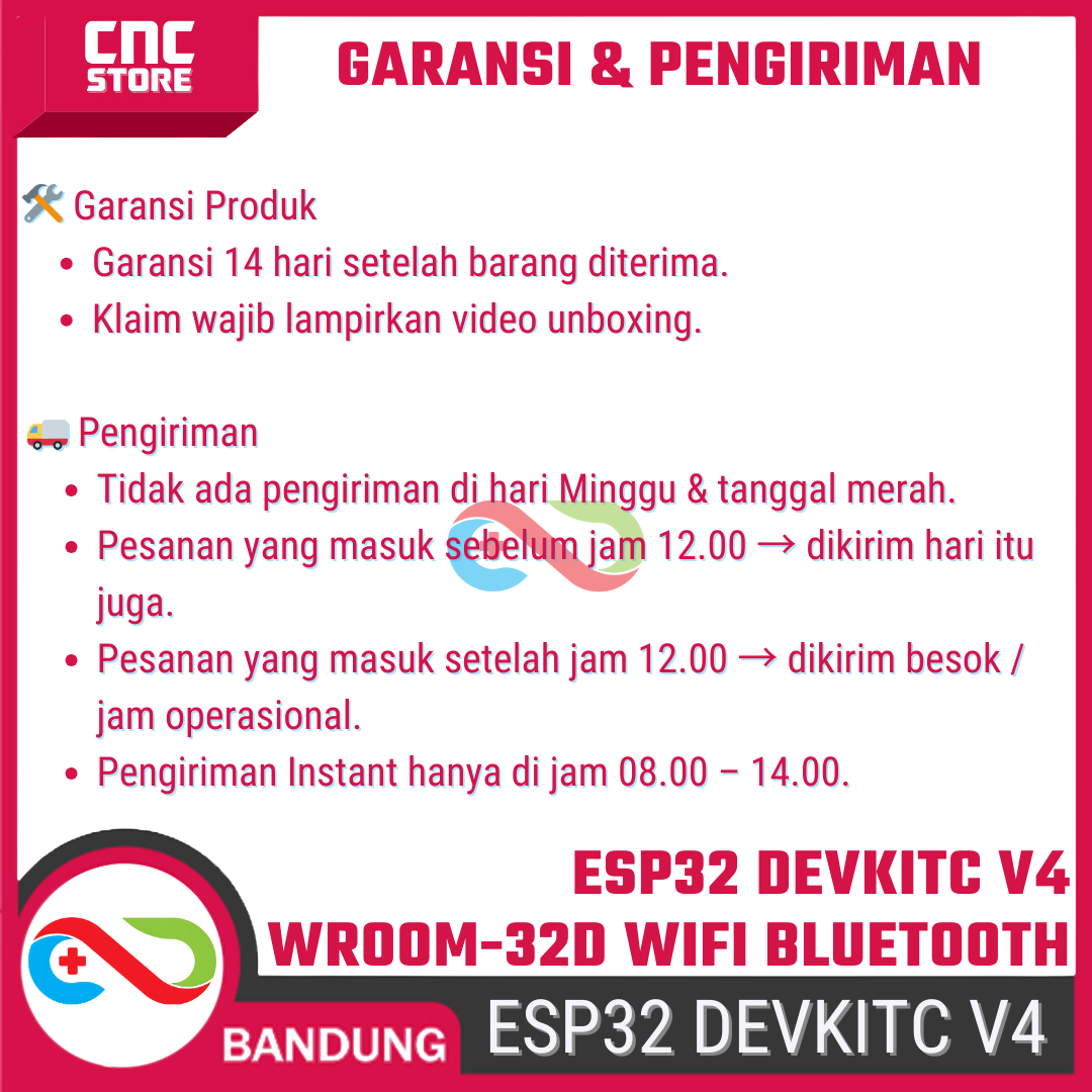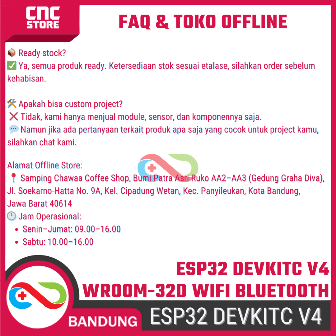 Board ini memiliki 38 pin I/O, konsumsi daya rendah, serta performa komputasi yang tinggi sehingga cocok untuk project IoT, smart home, automasi, robotik, sensor monitoring, hingga aplikasi real-time.
