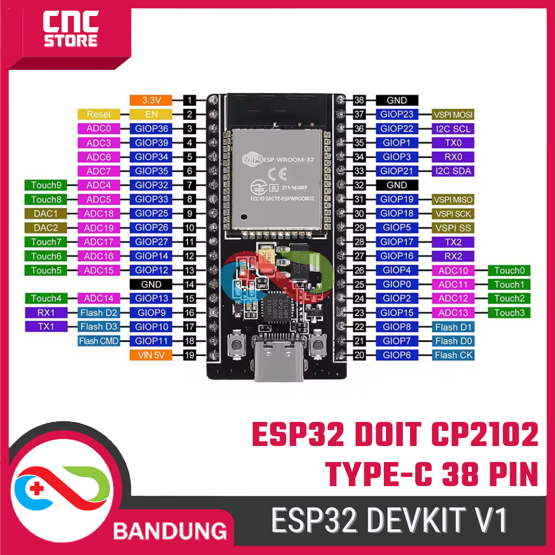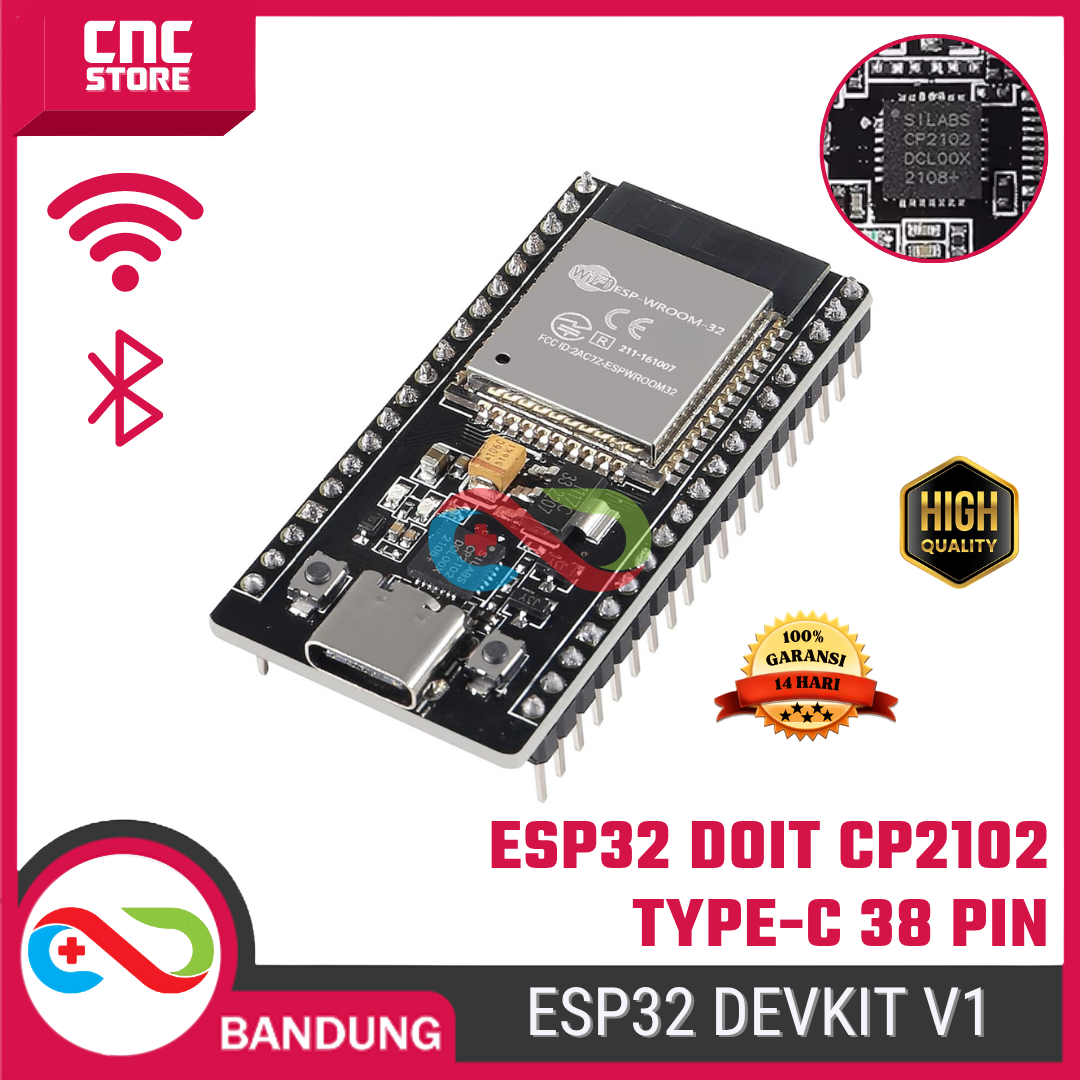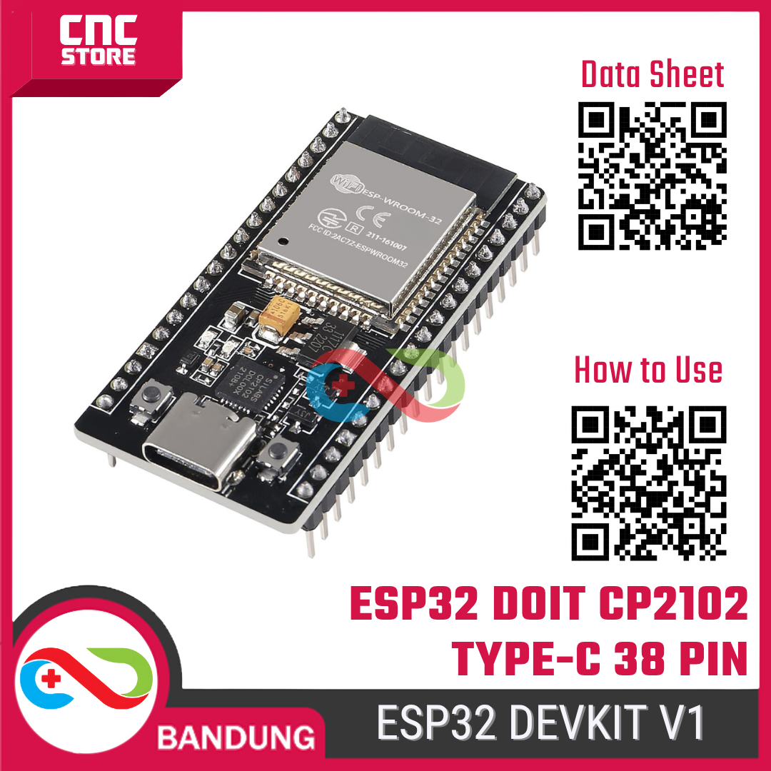Dibekali chip CP2102 untuk koneksi USB yang stabil dan port Type-C modern, board ini memudahkan kamu upload program tanpa ribet. Dengan 38 pin I/O multifungsi, kecepatan hingga 240MHz, dan memori besar, ESP32 cocok untuk semua proyek: mulai dari IoT monitoring, smart home, robotik, data logger, hingga automasi sistem pintar.
