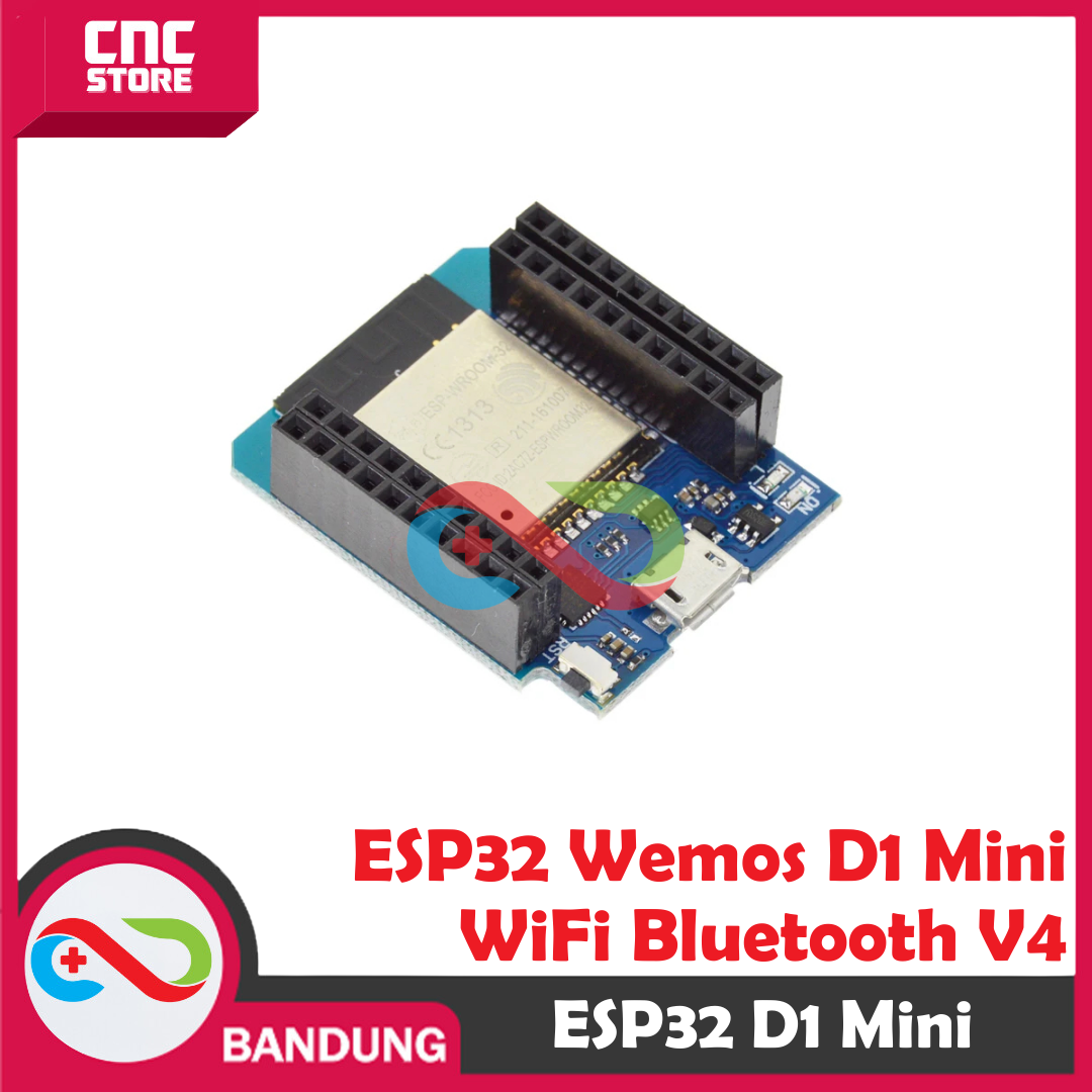 ESP32 Wemos D1 Mini V4 adalah development board mini berbasis ESP-WROOM-32, dirancang untuk pengguna yang butuh board kecil namun powerful. Mengusung dual-core CPU yang bisa berjalan sampai 240 MHz, memori besar, konektivitas WiFi + Bluetooth, serta banyak peripheral bawaan seperti touch sensor, Hall sensor, dan high-speed interface.