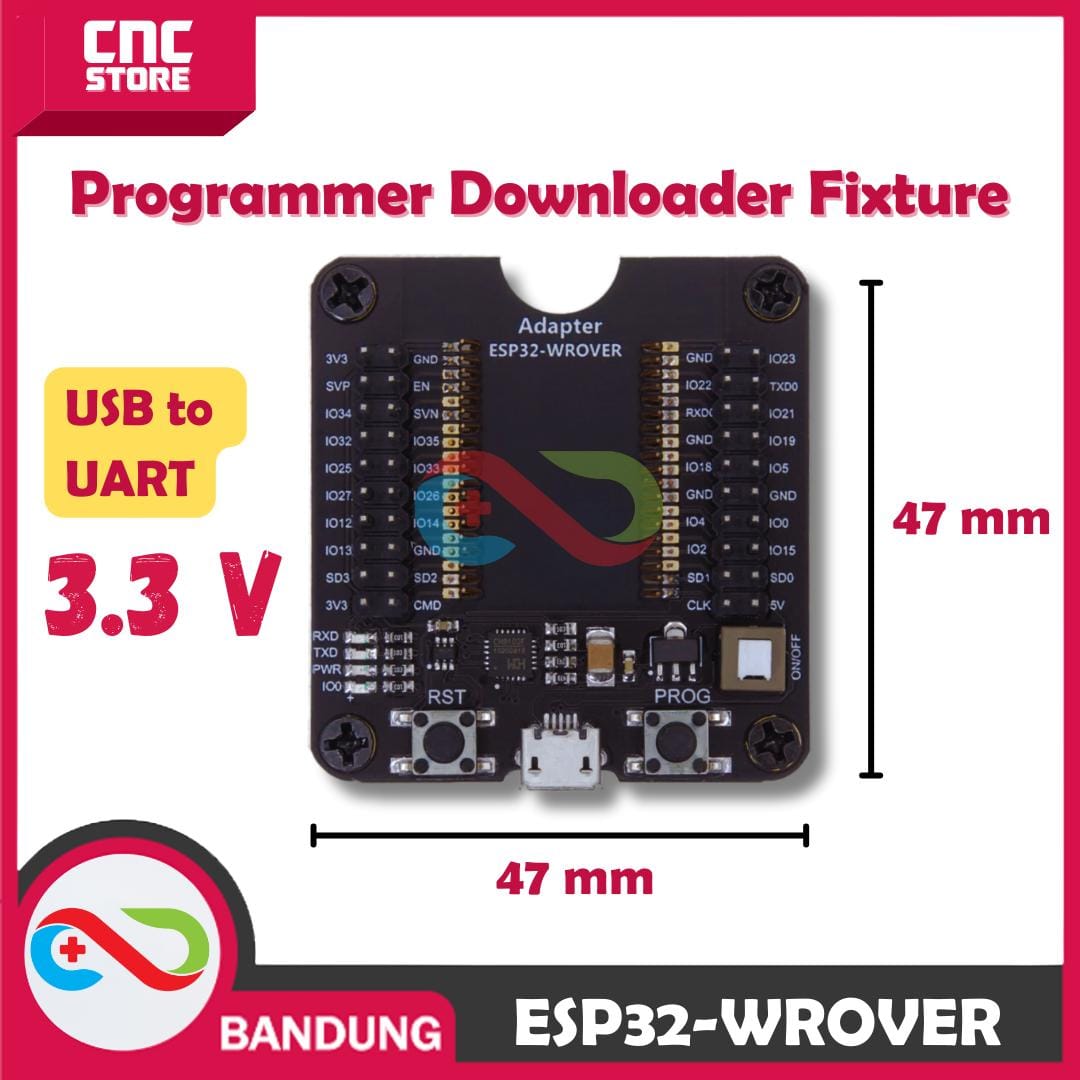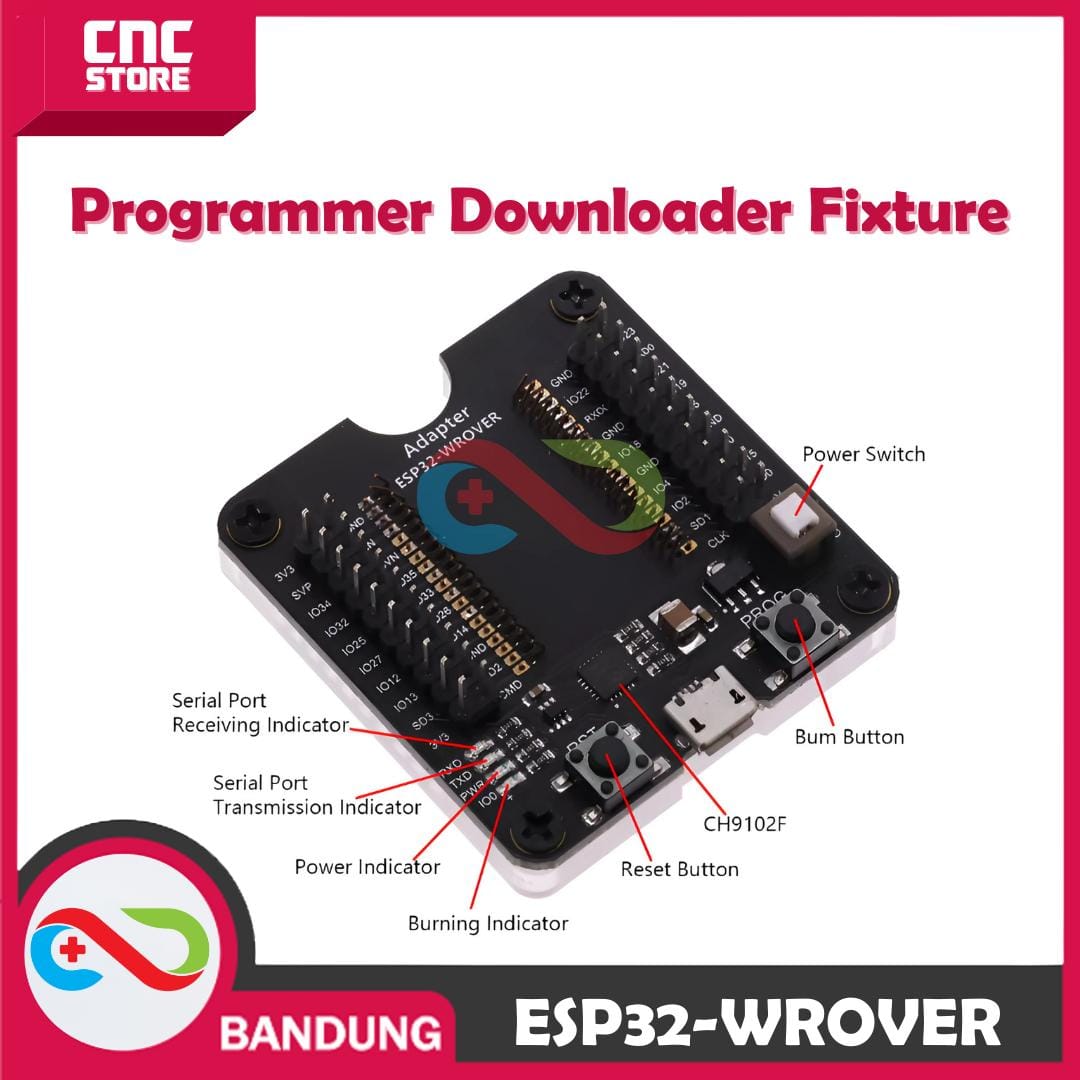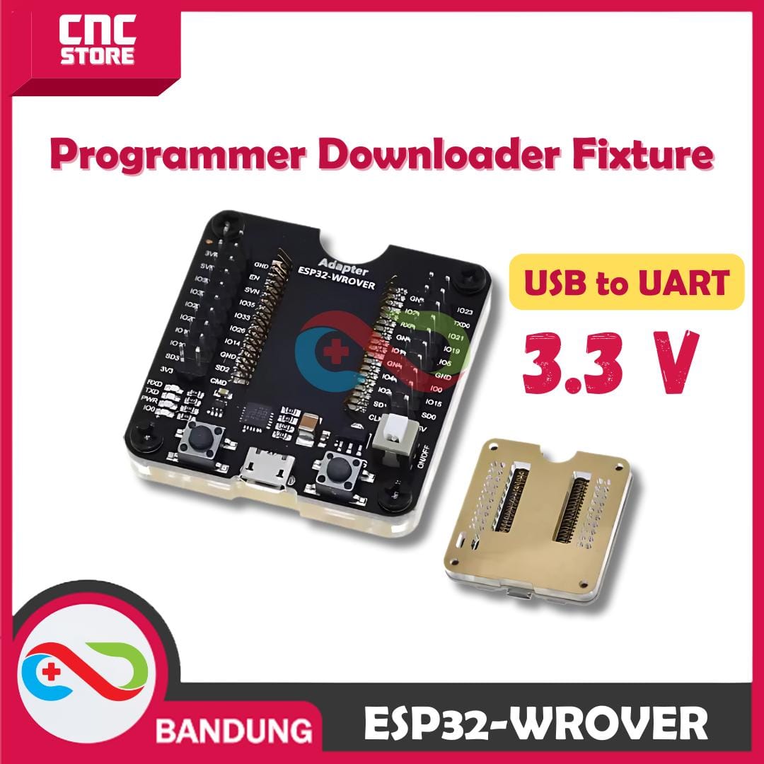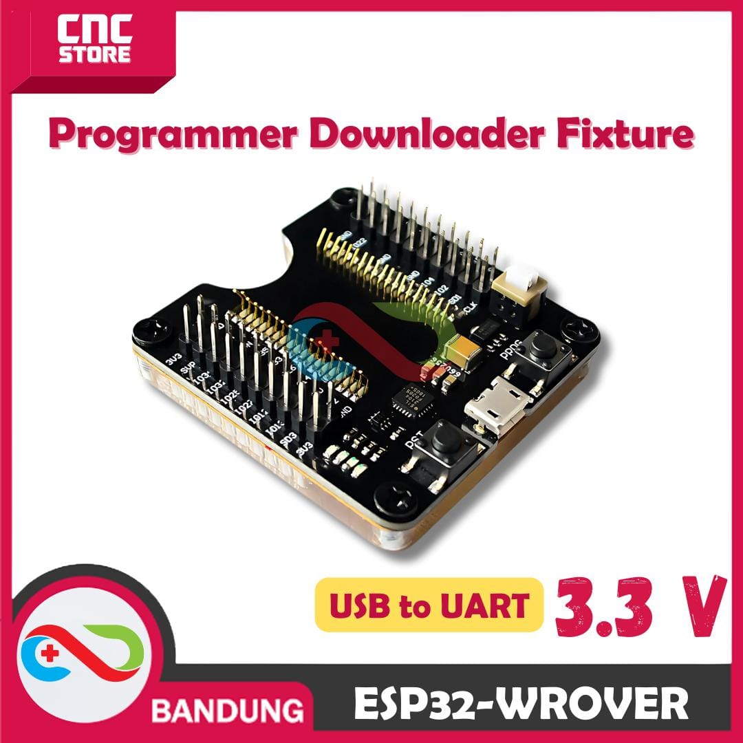 ESP32-WROVER Programmer Burner Downloader Fixture Breakout Board memudahkan pemrograman dan pengujian modul ESP32 seperti ESP32-WROVER dan ESP32-WROOM. Alat ini memungkinkan Anda mengunduh firmware, memperbarui kode, dan melakukan debugging langsung dari komputer melalui USB-to-UART. Dengan akses ke semua pin GPIO, Anda bisa menambahkan sensor atau modul lain untuk membuat prototipe IoT. Tombol Reset dan Boot juga mempermudah flashing dan pengujian. Alat ini ideal untuk pengembang yang sering bekerja dengan ESP32 dalam proyek IoT