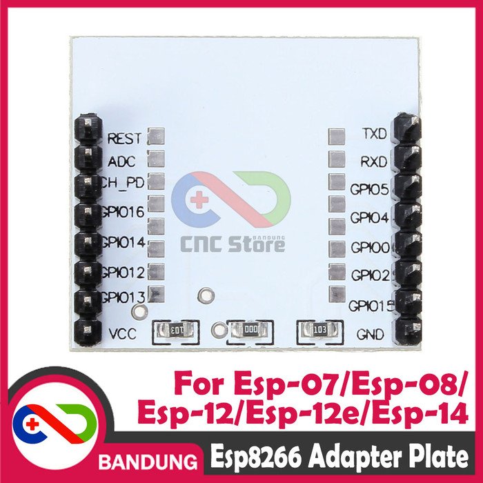 Adapter plate ini berfungsi untuk mengubah pitch 2.00mm pada modul ESP8266 (seri ESP-07, ESP-08, ESP-12, ESP-12E, ESP-12F, hingga ESP-14) menjadi pitch standar 2.54mm sehingga: