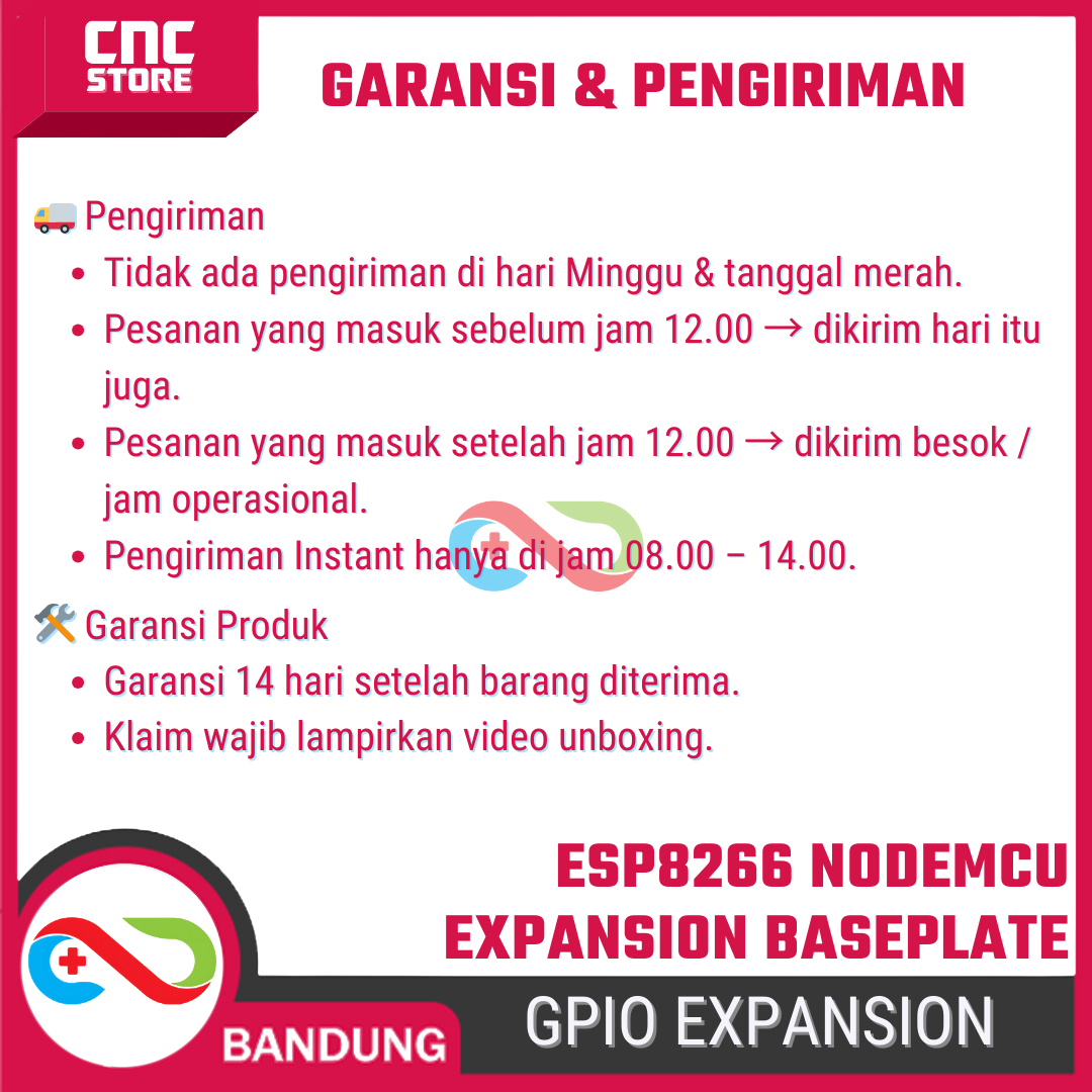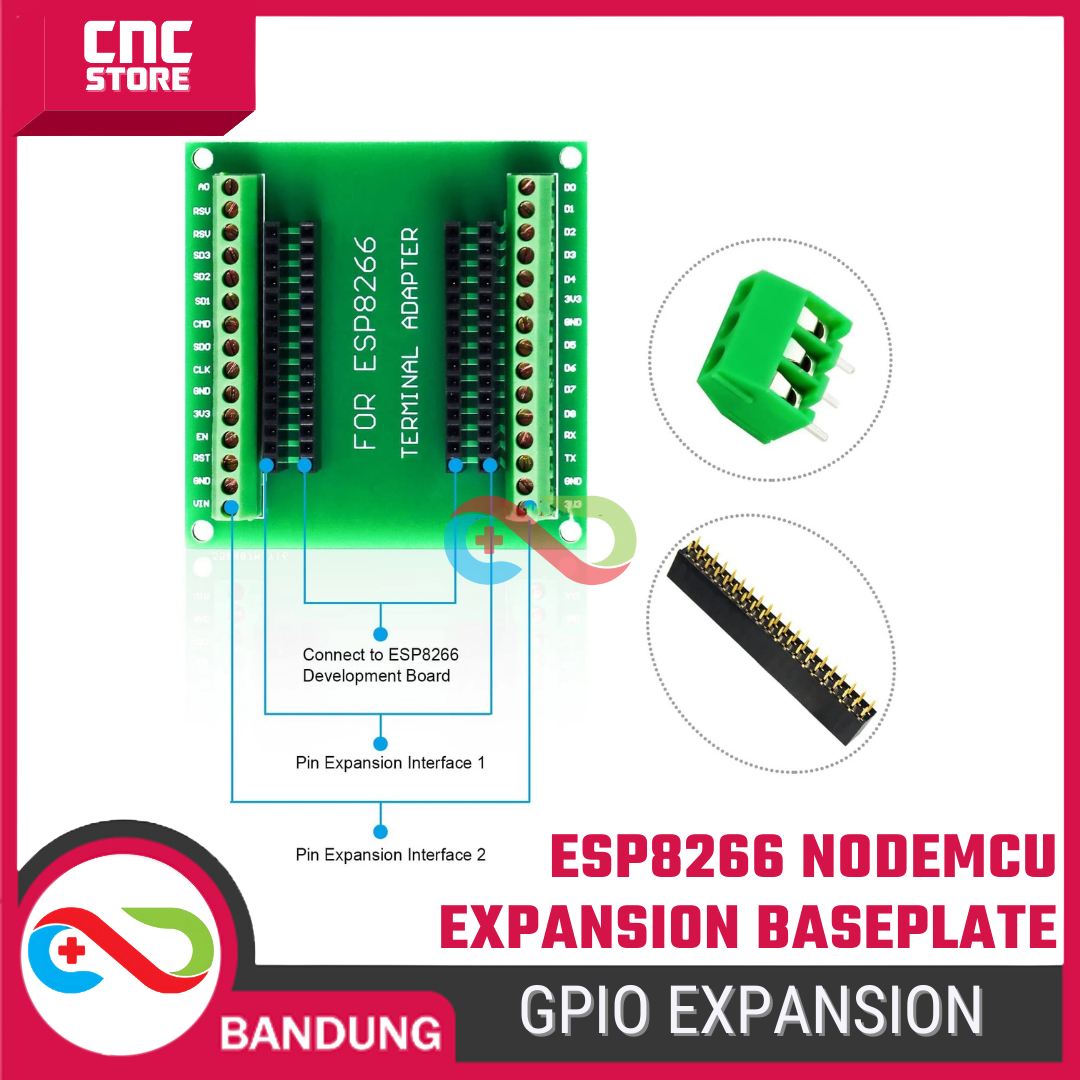 Expansion Baseplate ESP8266 NodeMCU adalah papan adaptor terminal yang berfungsi memecah seluruh pin ESP8266 NodeMCU ke terminal sekrup (screw terminal). Dengan modul ini, semua pin GPIO, power, dan komunikasi bisa dihubungkan langsung menggunakan kabel tanpa perlu solder atau breadboard.