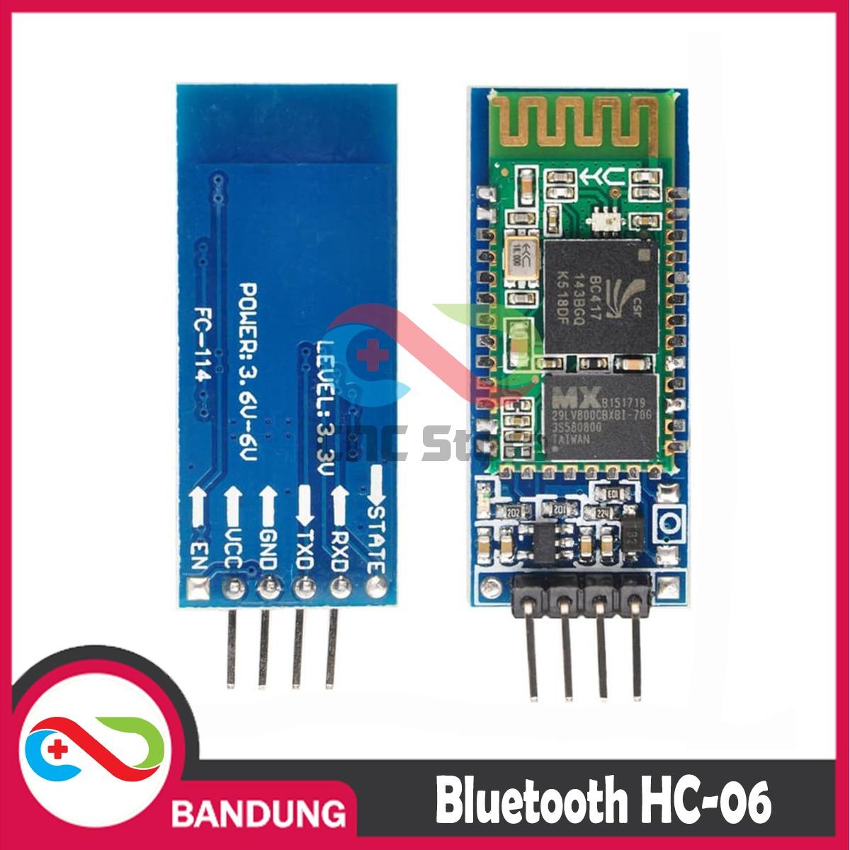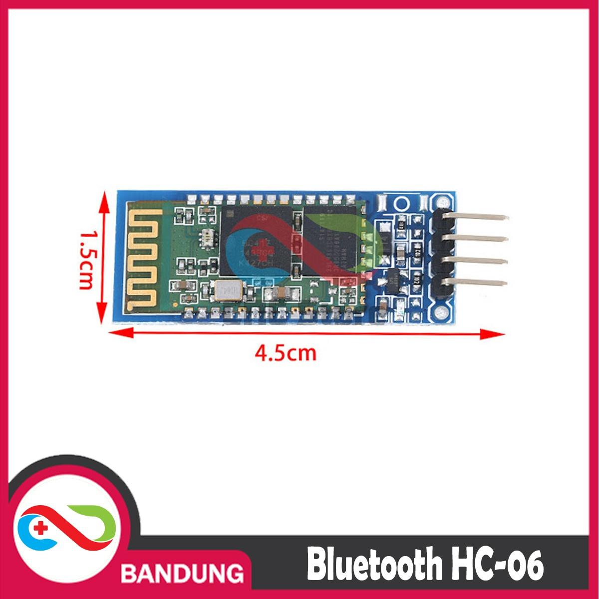 Bluetooth Module HC-06 merupakan module komunikasi nirkabel pada frekuensi 2.4GHz dengan default koneksi hanya sebagai SLAVE. Sangat mudah digunakan dengan mikrokontroler untuk membuat aplikasi wireless. Interface yang digunakan adalah serial RXD, TXD, VCC dan GND. Built in LED sebagai indikator koneksi bluetooth.