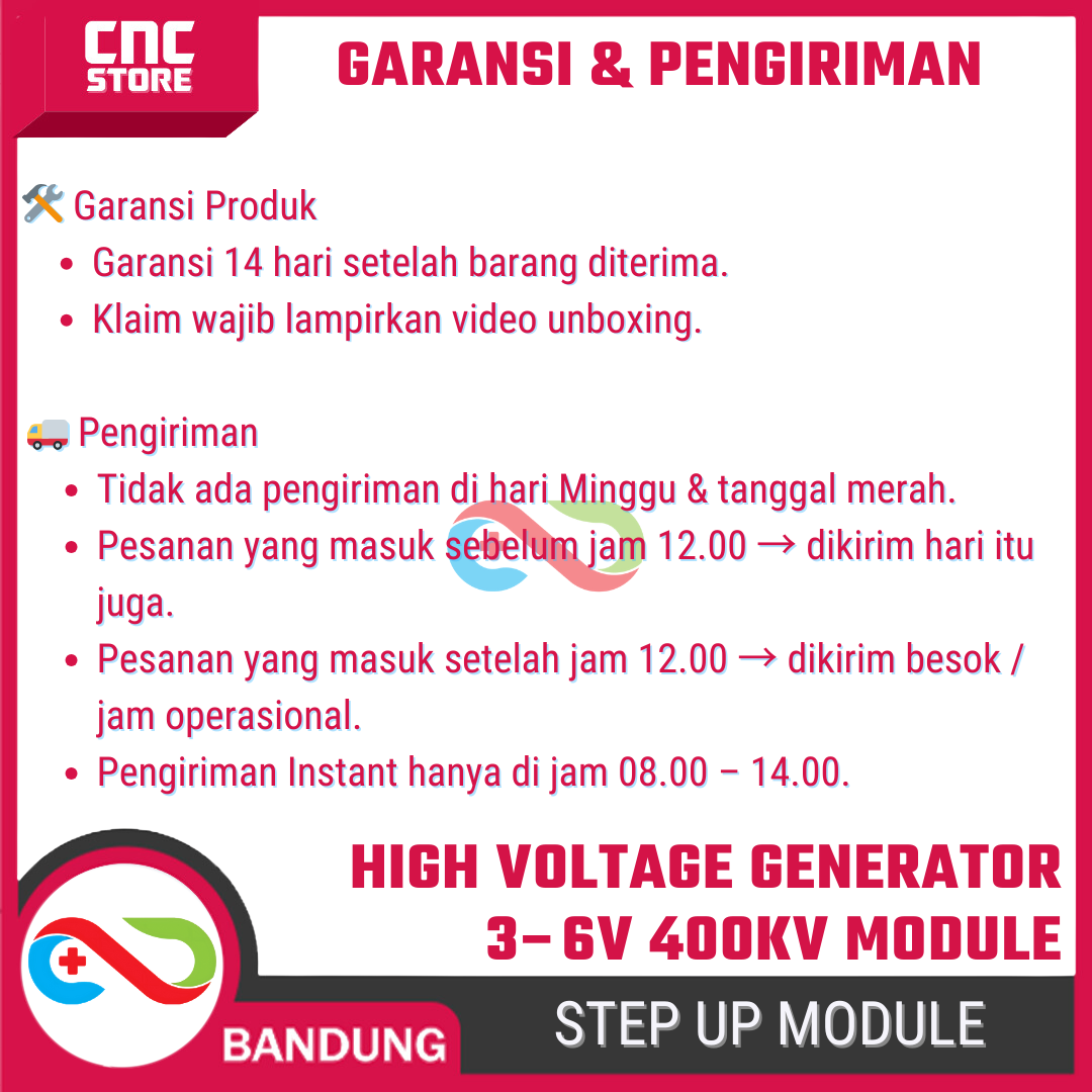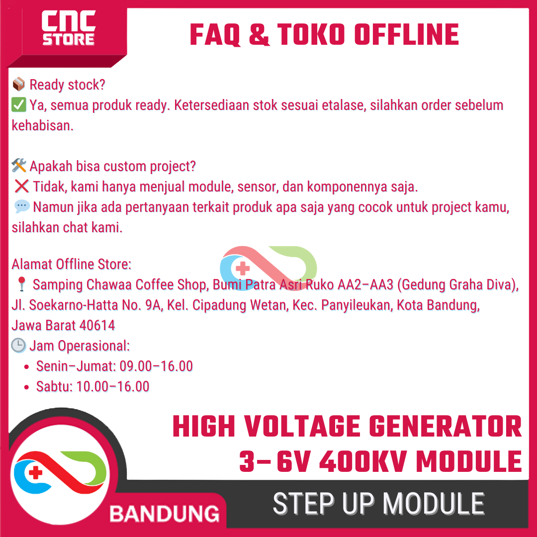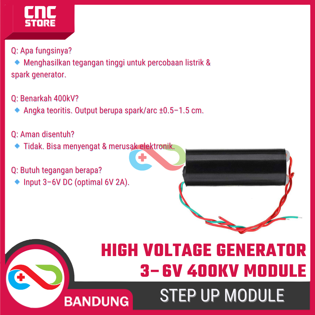 • Output: High Voltage AC hingga ±400kV (percikan kecil, bukan power besar)