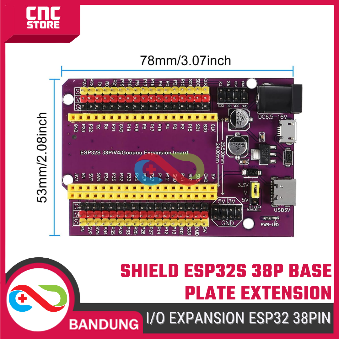 Perluasan mudah untuk menghubungkan sensor, modul, dan perangkat eksternal ke board ESP32 Anda! Expansion Shield ini dirancang khusus untuk ESP32S Dev Board (38 pin), memudahkan akses ke semua pin GPIO, serta mempercepat proses prototyping dan pengembangan proyek berbasis IoT, otomasi, atau DIY.