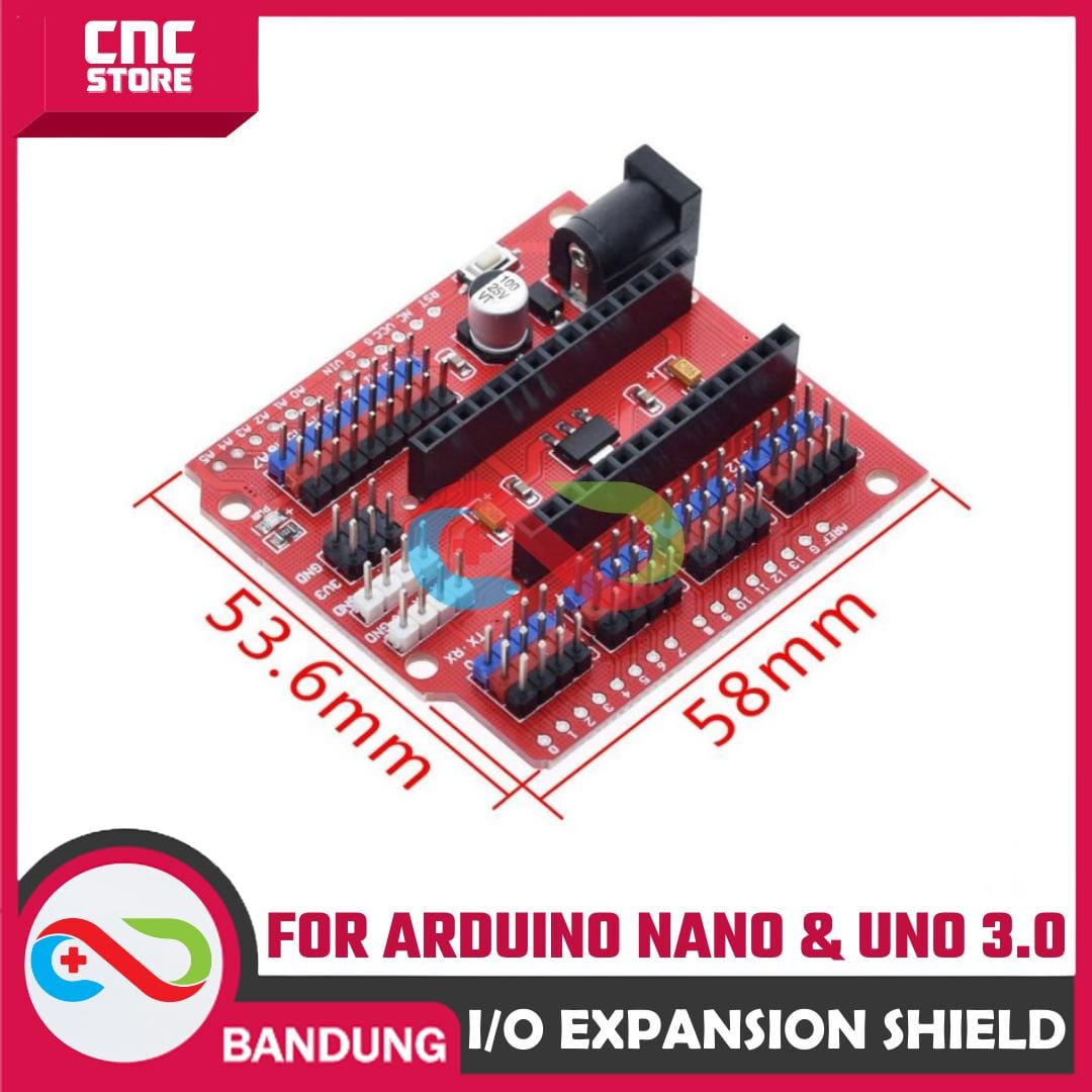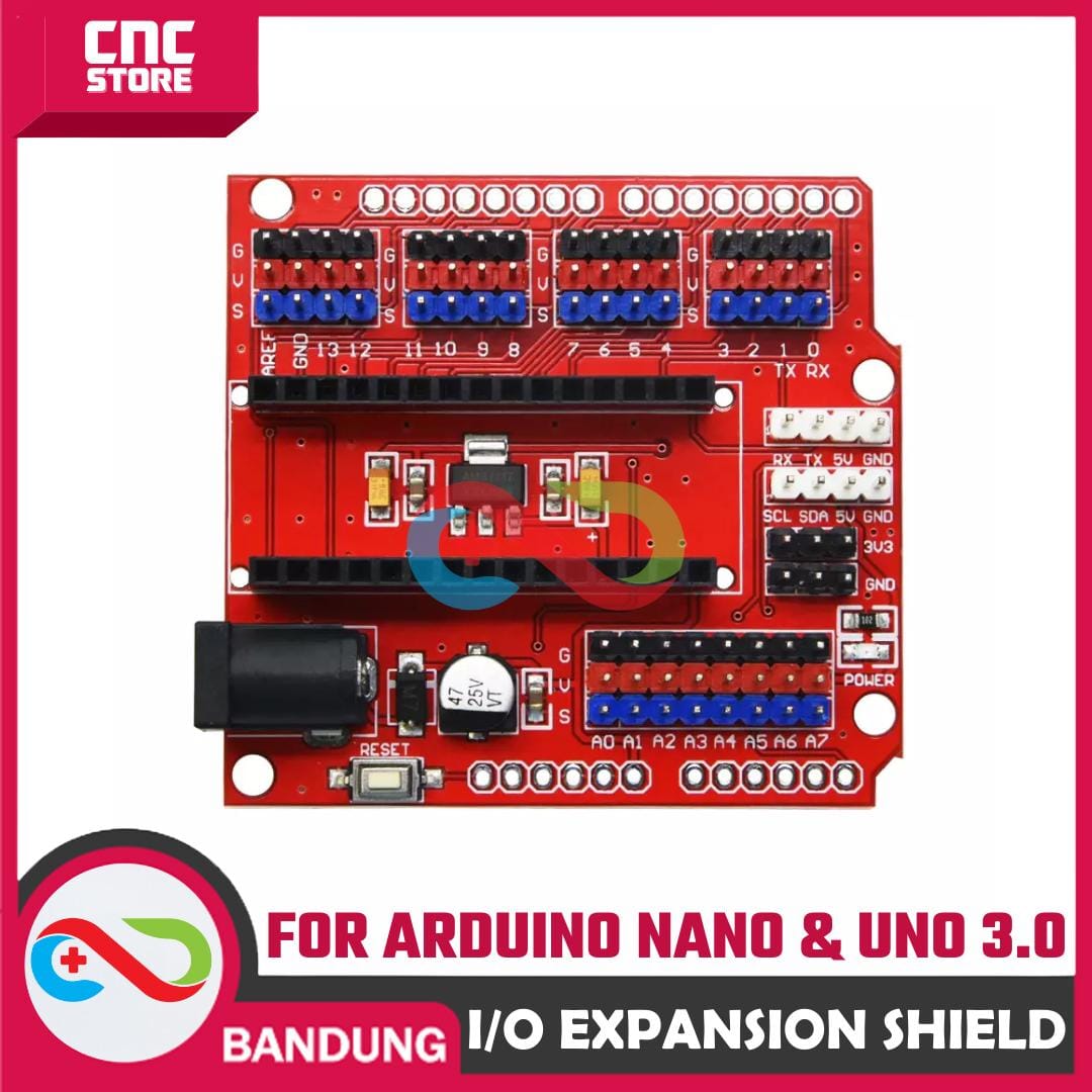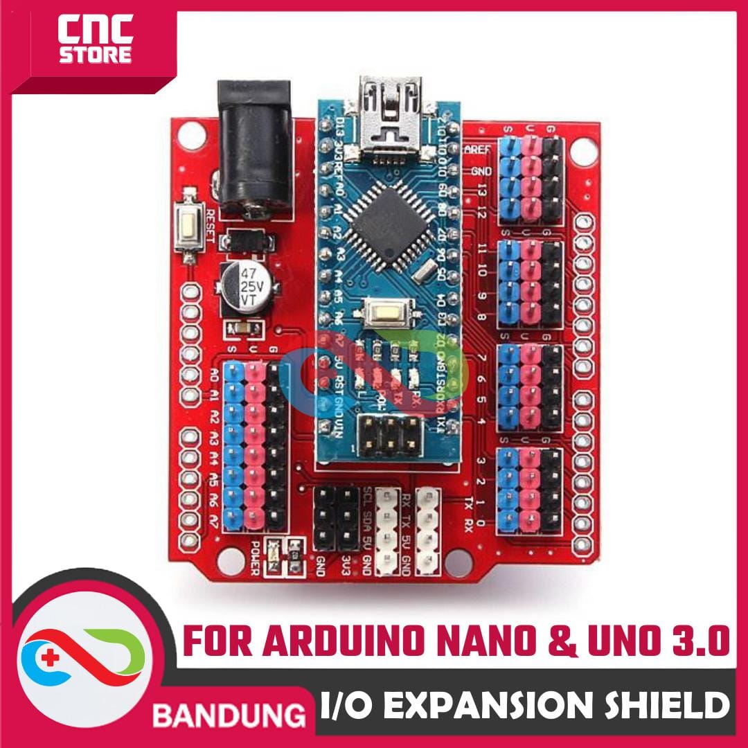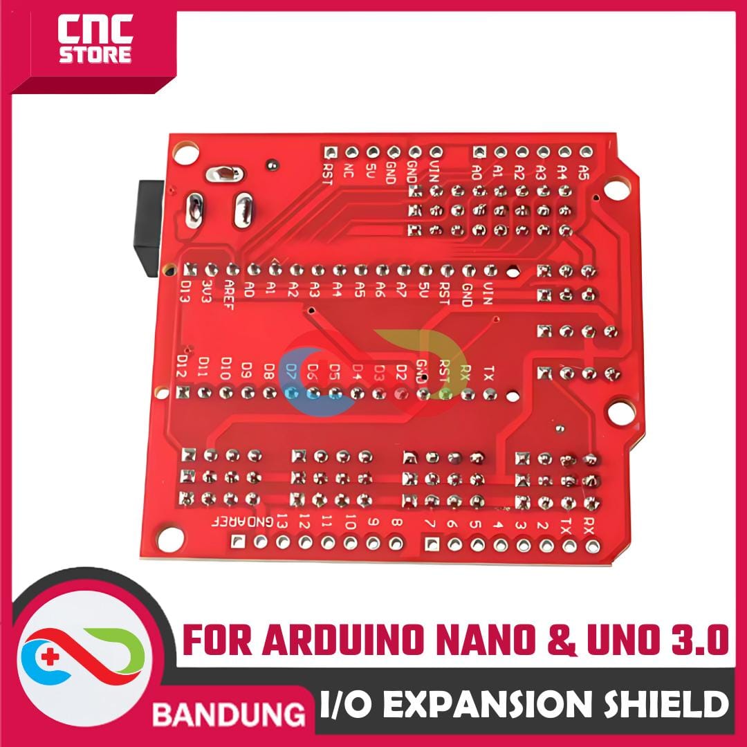 Ini adalah shield I/O expansion untuk Arduino NANO yang bentukya disesuaikan dengan board UNO. Kalo agan punya banyak device untuk dihubungkan arduino, seperti banyak sensor, bluetooth, motor servo, relay, SD card, RTC dll, maka expansion shield ini wajib untuk agan miliki. Biar agan nggak pusing kalo lagi nginstal kabel atau lagi troubleshooting. :D