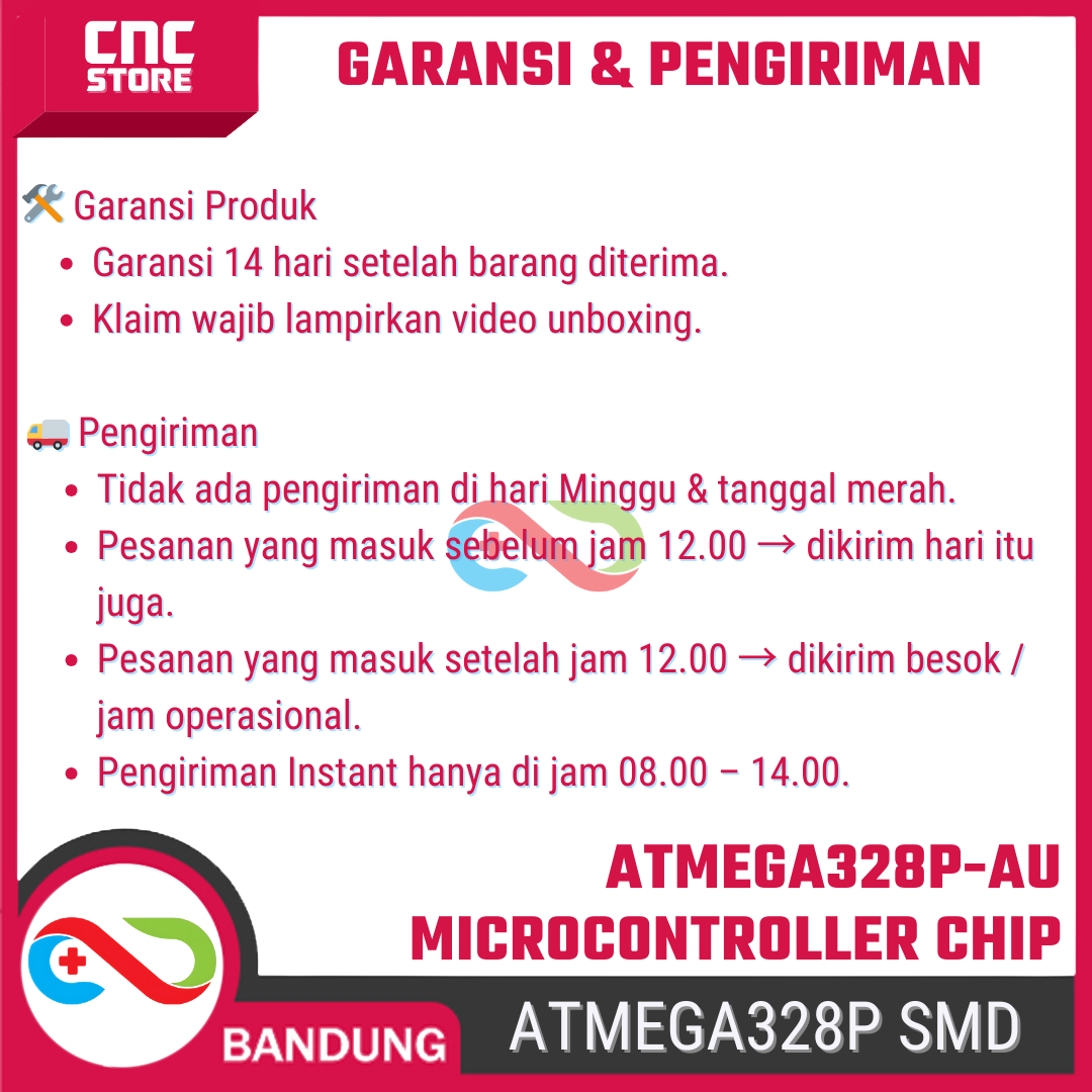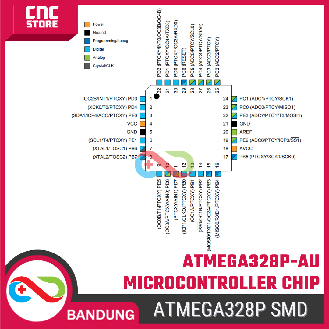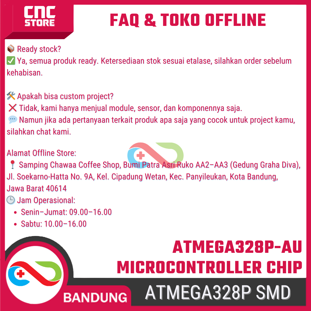 Ini adalah chip yang dipakai di Arduino Nano, Arduino Pro Mini, dan Arduino Uno SMD, sehingga sangat cocok sebagai replacement atau untuk membuat proyek mikrokontroler kustom.