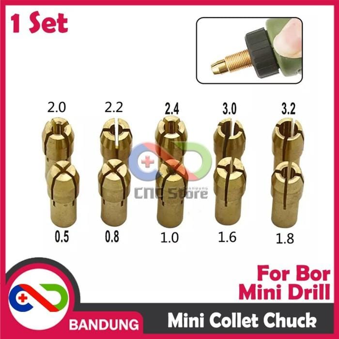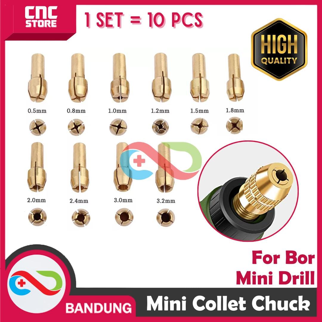 Punya bor mini drill tapi chuck nya cuman ada satu dan gak bisa ganti-ganti ukuran??, kali ini CNC siapkan untuk akang teteh sekalian biar gak bingung ganti ukuran chuck nya, tidak hanya satu ukuran tapi ada 10 ukuran nih
