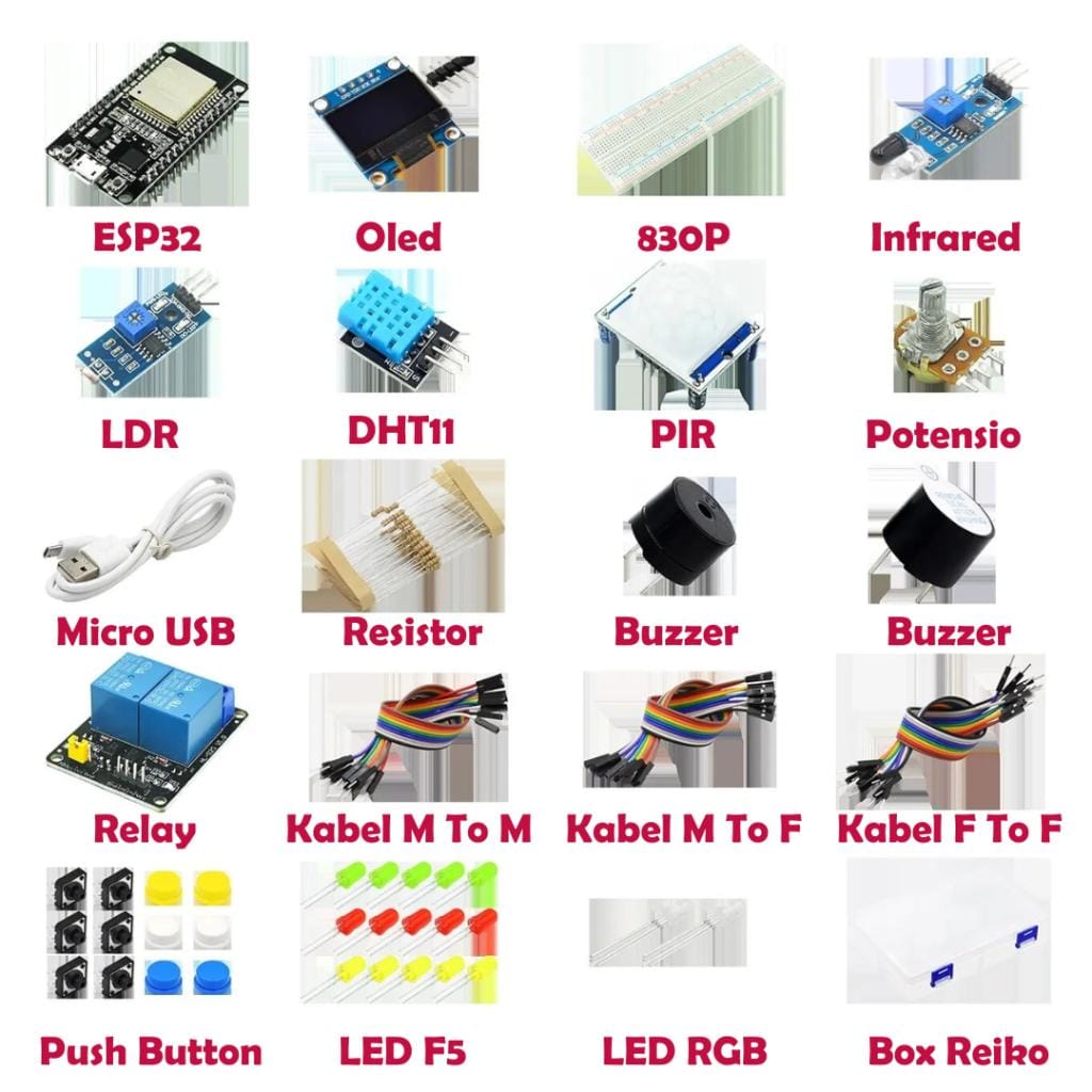 Sudah hadir lagi nih kit terbaru dari kita yaitu “KIT STATER ESP32″ kit ini sangat cocok bagi kalian yang baru belajar ESP32 dan ingin lebih mendalami atau belajar tentang module-module sensor yang sering digunakan pada mikrokontroller, Karena pada kit ini tersedia berbagai macam jenis sensor yang dilengkapi dengan tutorial skematik dan program dasar yang dapat kalian coba dan kalian kembangkan. perbedaan kit ini dengan kit sensor sebelumnya, kali ini kita menggunakan modul ESP32 yang memiliki lebih banyak fitur dibandingkan sengan arduino.
