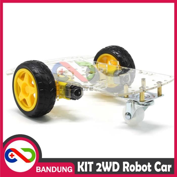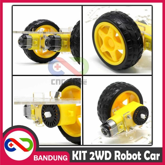 Paketnya sudah termasuk roda, dc motor, chassis yang lebar dan disc encoder.