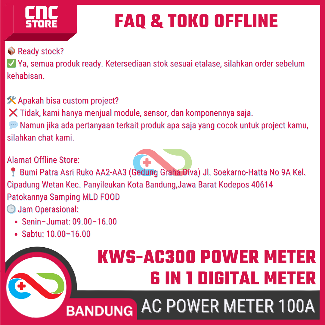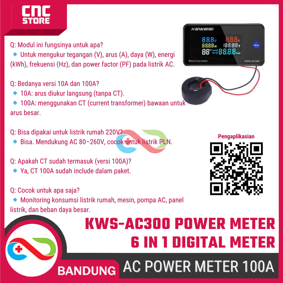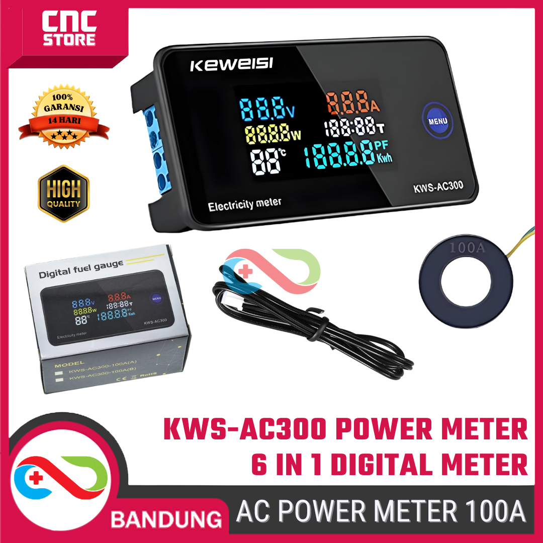 KWS-AC300 adalah digital power meter AC single phase yang mampu menampilkan 6 parameter kelistrikan secara real time. Tersedia dalam dua mode arus, yaitu 10A (direct shunt) dan 100A (CT clamp), sehingga bisa disesuaikan dengan kebutuhan beban kecil sampai besar.