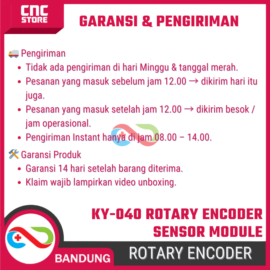 KY-040 adalah modul incremental rotary encoder berbasis mechanical encoder dengan dua channel sinyal (quadrature) dan satu tombol push (momentary switch).