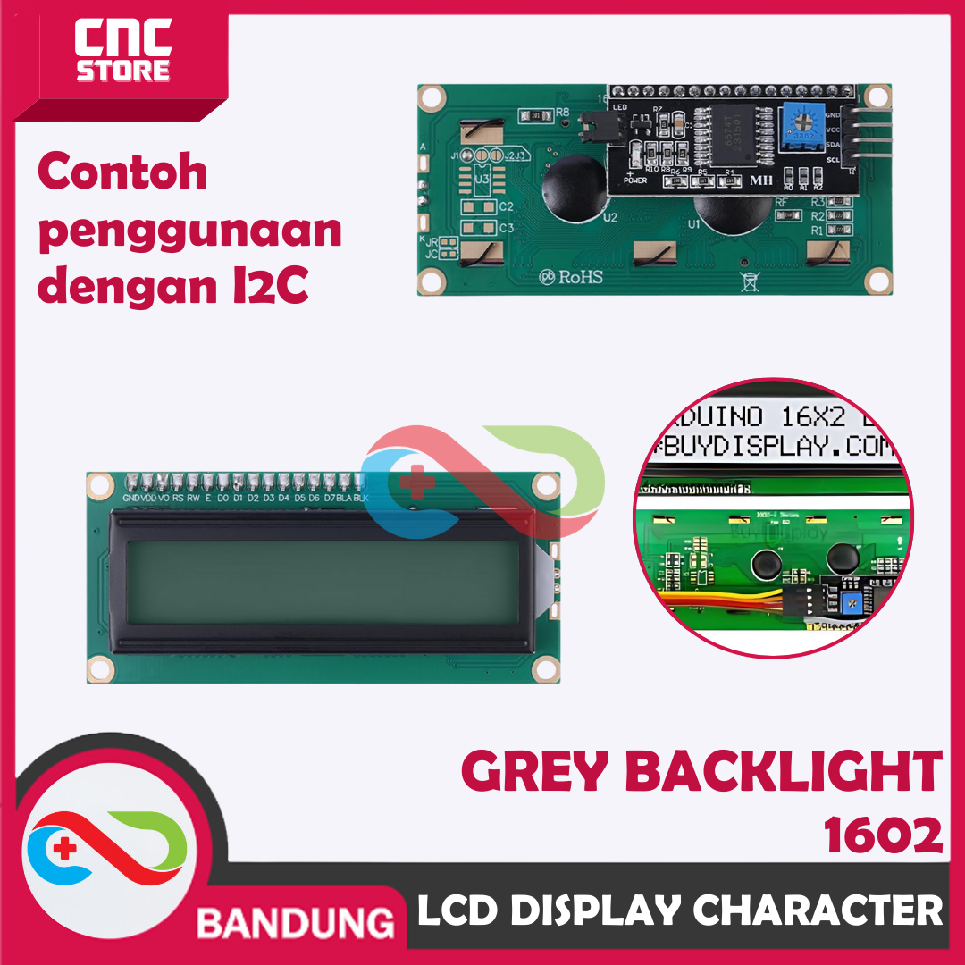 LCD 1602 I2C adalah modul display karakter 16×2 yang sudah langsung terpasang I2C serial interface (backpack) di bagian belakangnya.