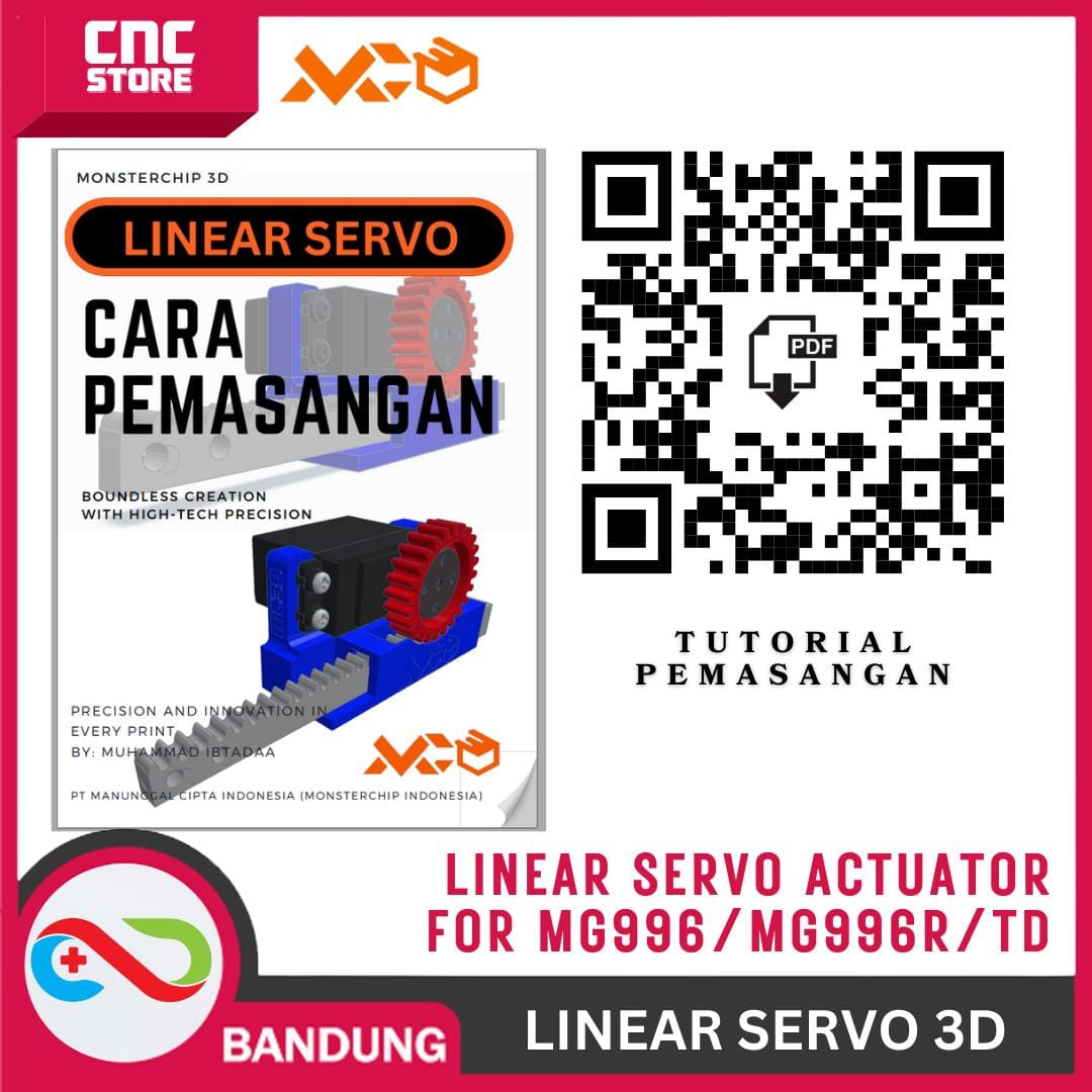 Ini adalah aktuator servo linier serba guna (gaya pendorong). Dirangcang untuk MICRO SERVO standar seperti SG90 atau MG90 dengan putaran 180′. di desain khusus dengan riset yang mendalam. Terbuat dari bahan yang di cetak menggunakan 3D Printer (PLA+). Bisa untuk pengganti doorlock ataupun project-project yang membutuhkan daya dorong sebagai simulasi atau prototype