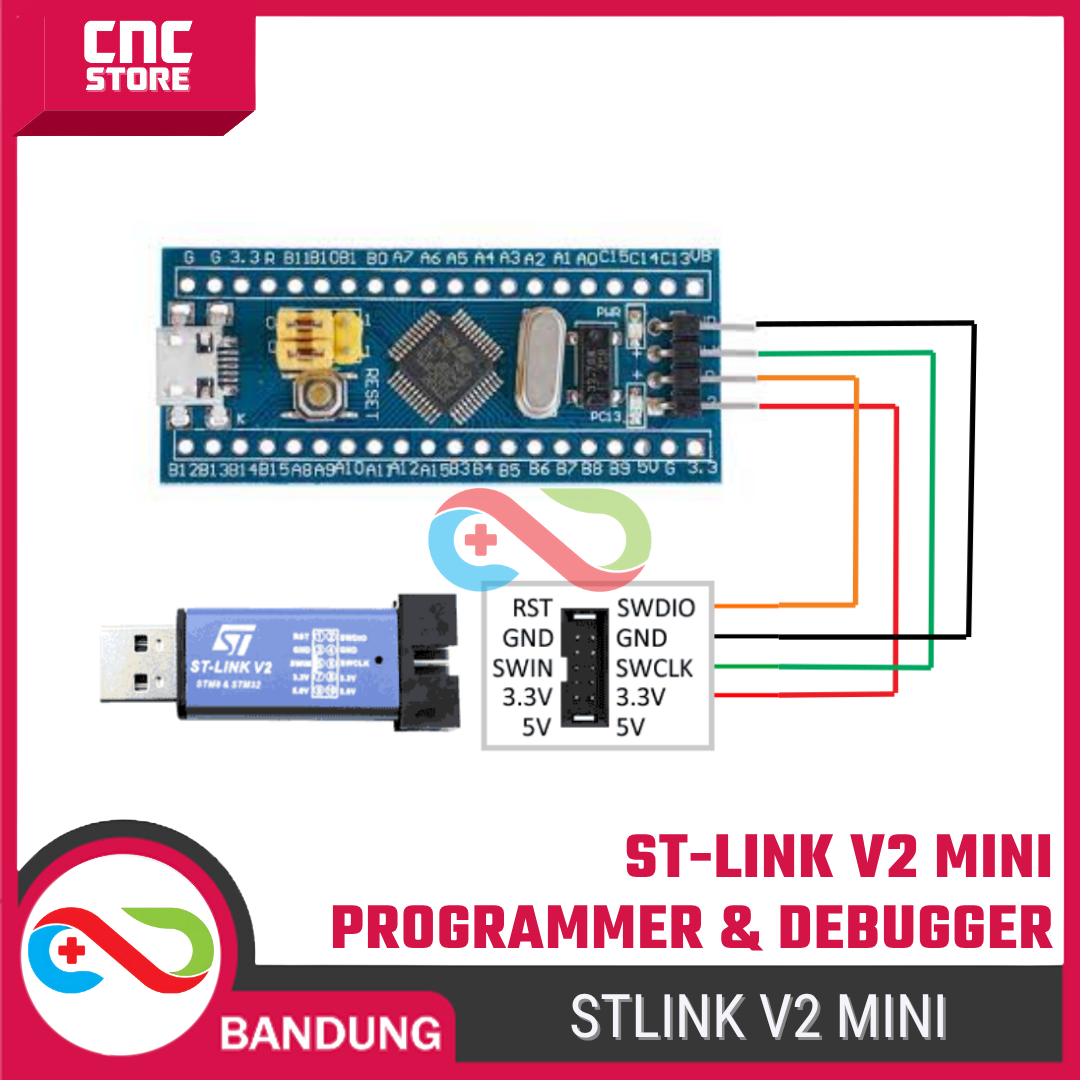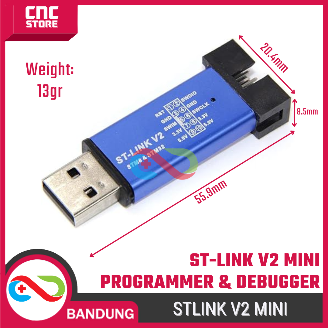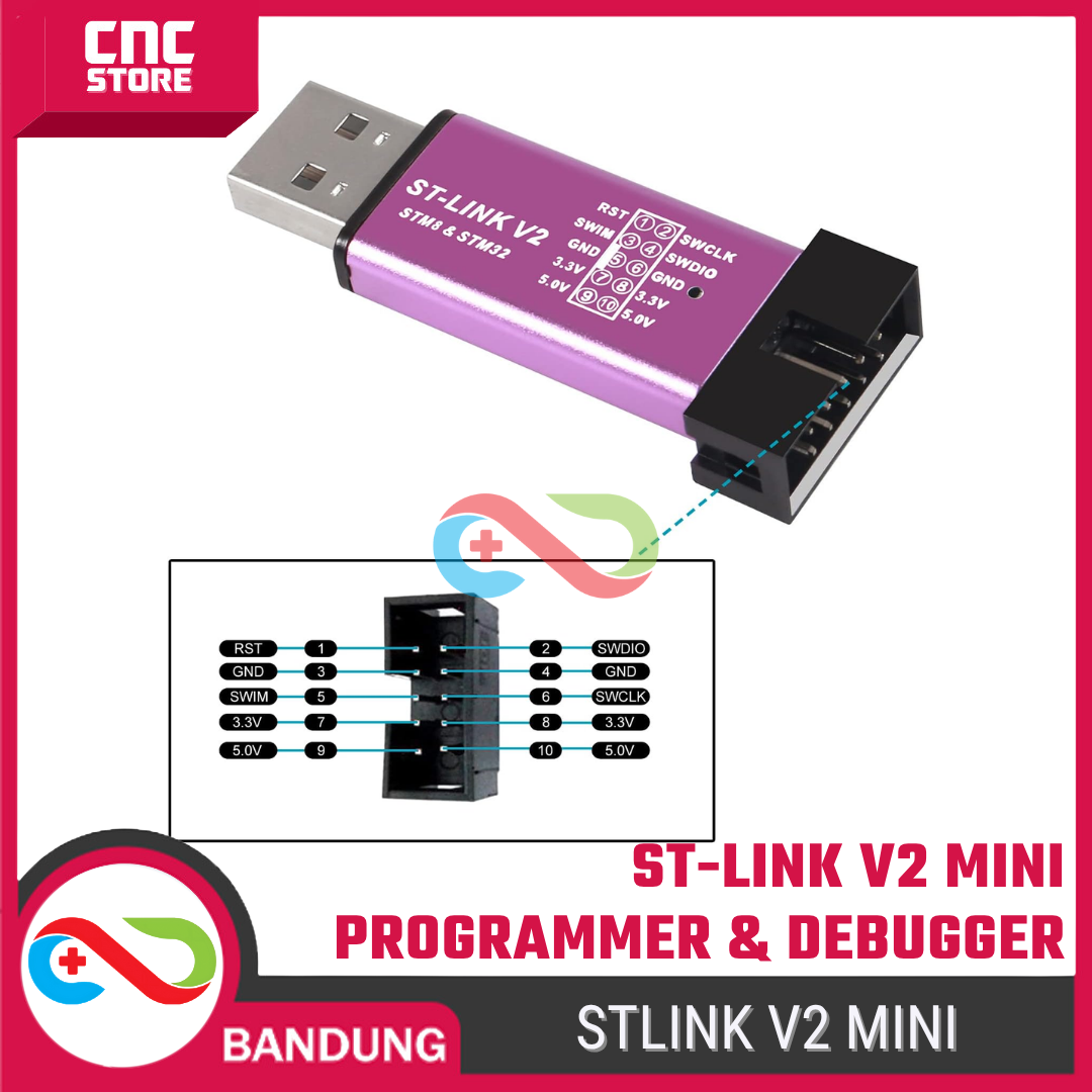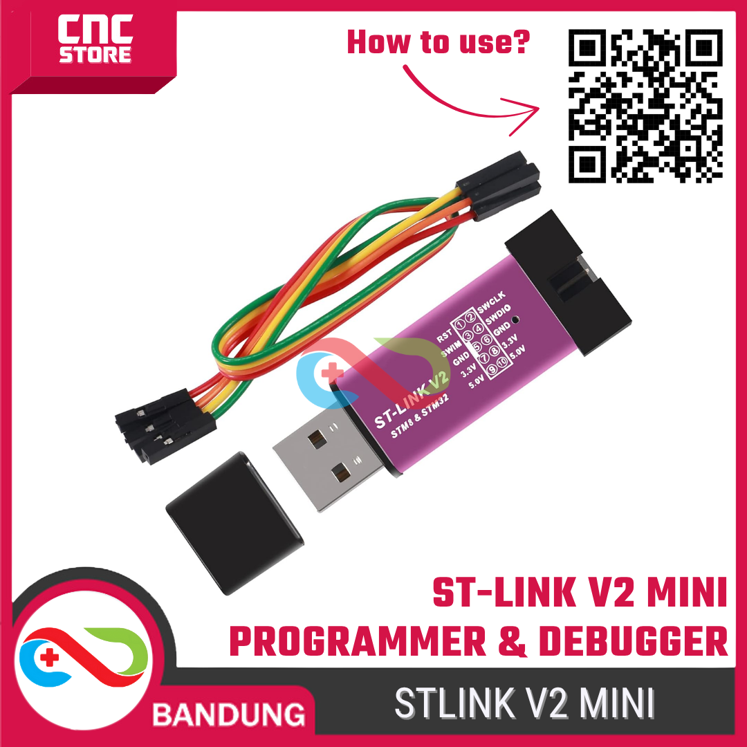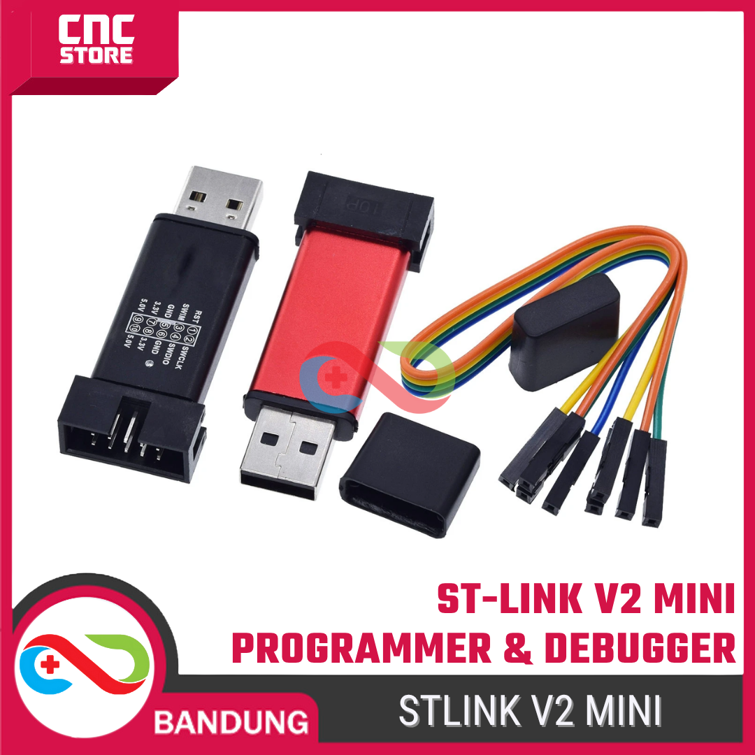 ST-LINK V2 adalah programmer & debugger resmi berbasis STMicroelectronics, digunakan untuk mem-flash dan melakukan debug mikrokontroler STM8 dan STM32. Modul ini bekerja lewat koneksi USB ke PC.
