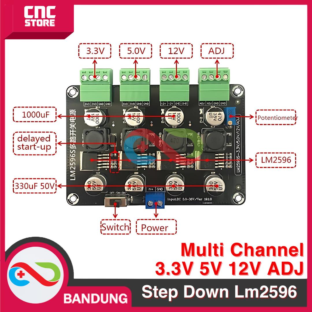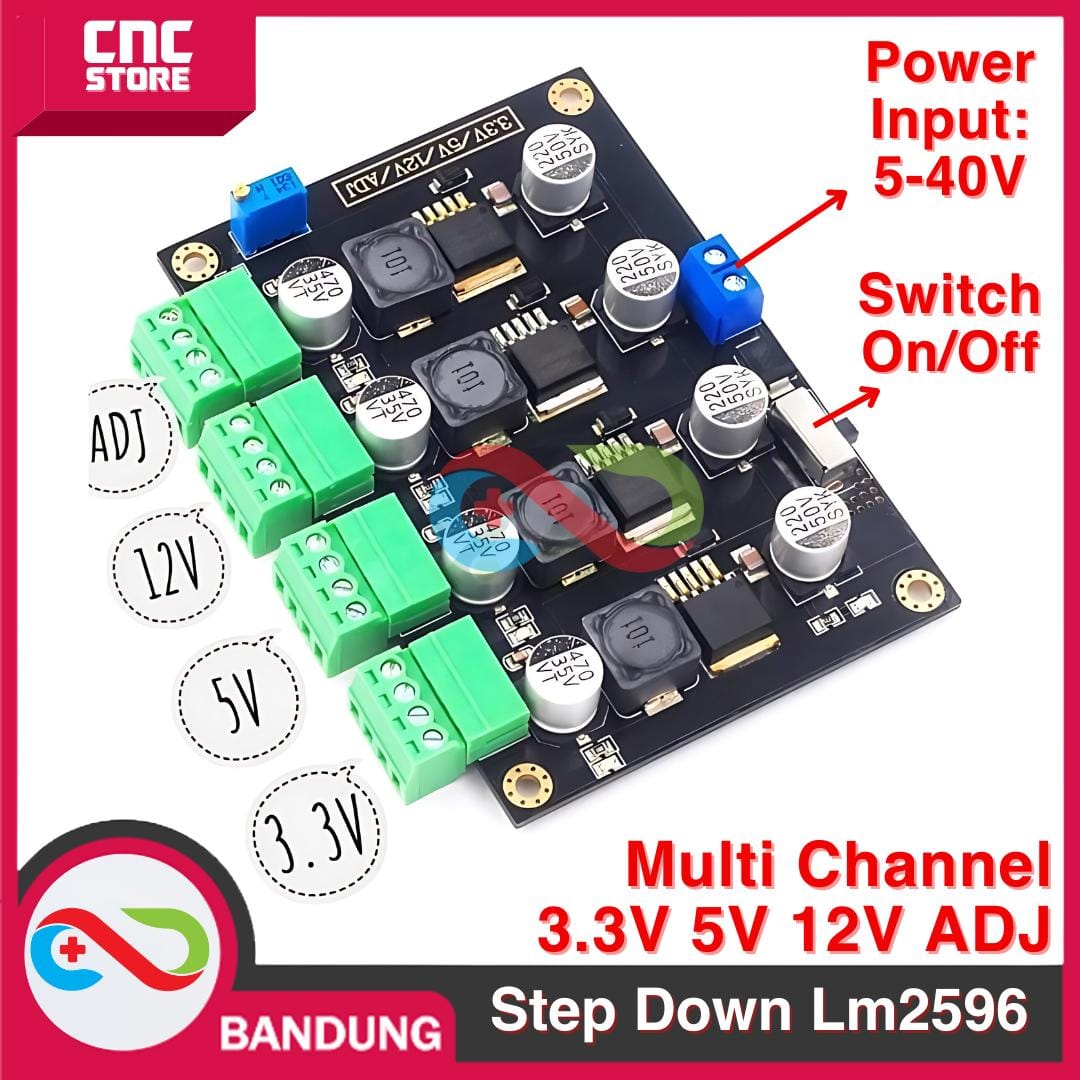 output :3.3V Fix/5V Fix/12V Fix/0~28V Adjustable/maksimal tegangan adjustable = Vinput – 2V