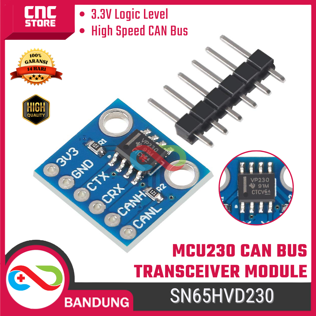 N65HVD230 CAN Bus Transceiver Module adalah modul komunikasi berbasis IC Texas Instruments SN65HVD230, yang berfungsi sebagai CAN transceiver (Controller Area Network) untuk menghubungkan mikrokontroler ke jaringan CAN Bus.
