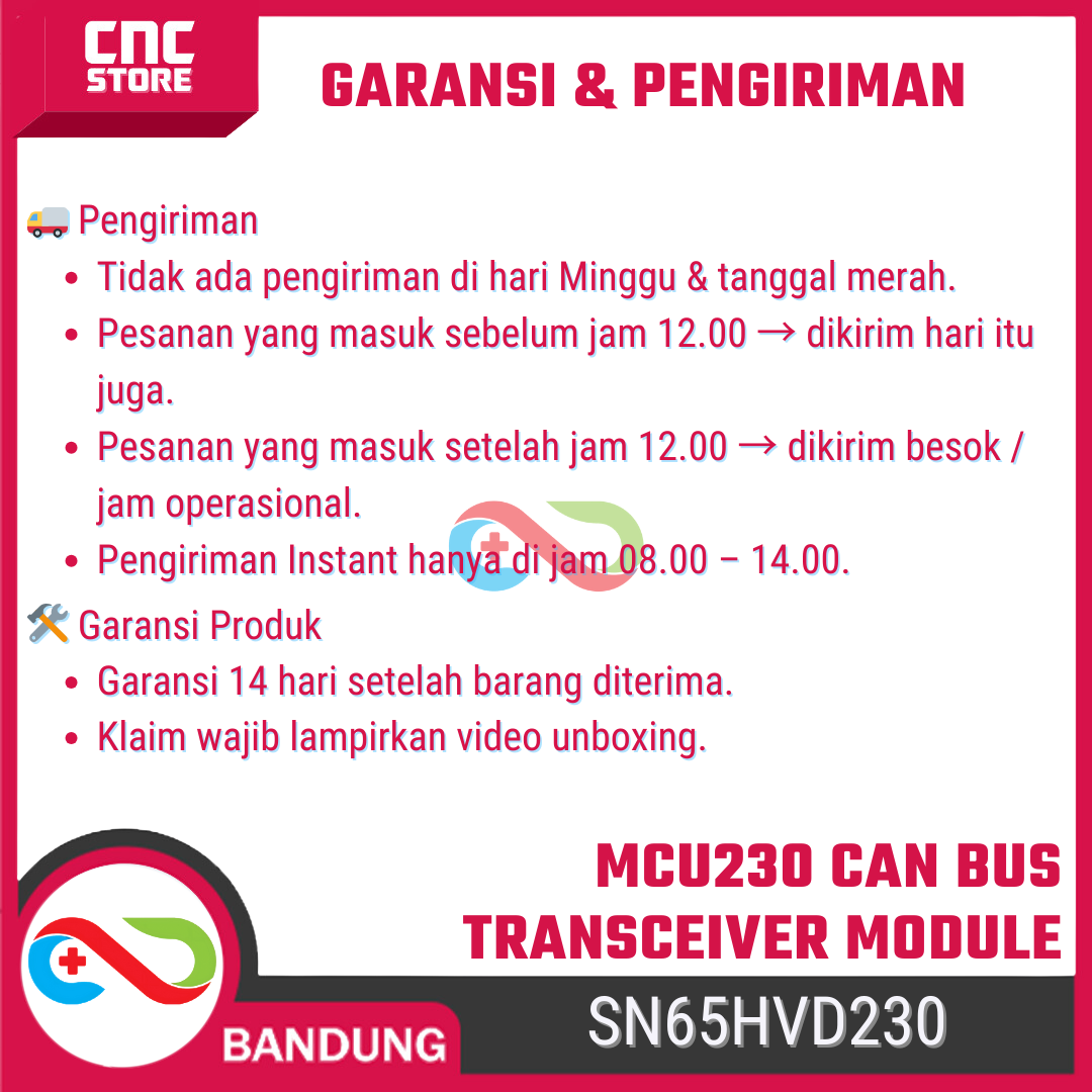 Modul ini bekerja pada logic 3.3V, sehingga sangat cocok digunakan bersama ESP32, STM32, dan Arduino 3.3V, serta umum dipakai pada sistem otomotif, robotika, dan komunikasi data jarak menengah yang membutuhkan stabilitas tinggi dan ketahanan terhadap noise.