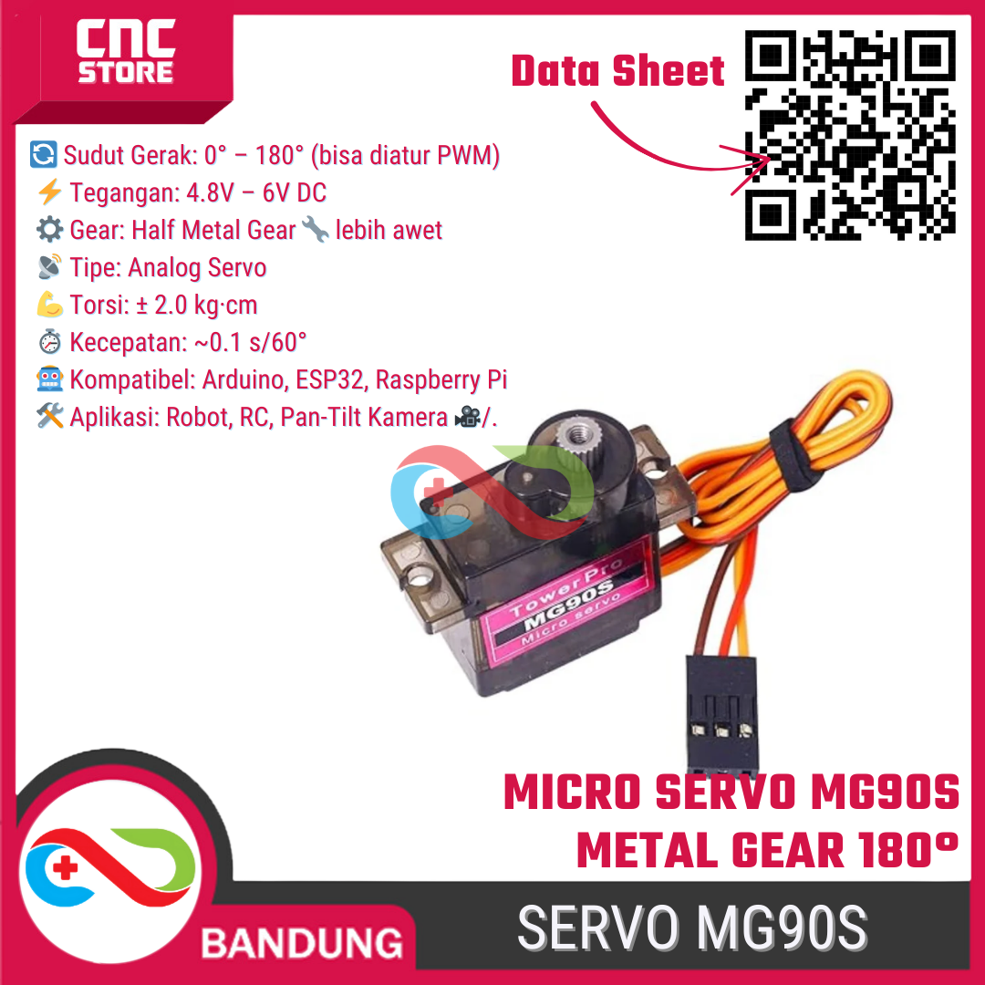 Dengan harga terjangkau tapi performa di atas rata-rata, MG90S ini sering jadi “senjata wajib” untuk project robotic arm, drone mini, sampai kebutuhan otomasi kecil.