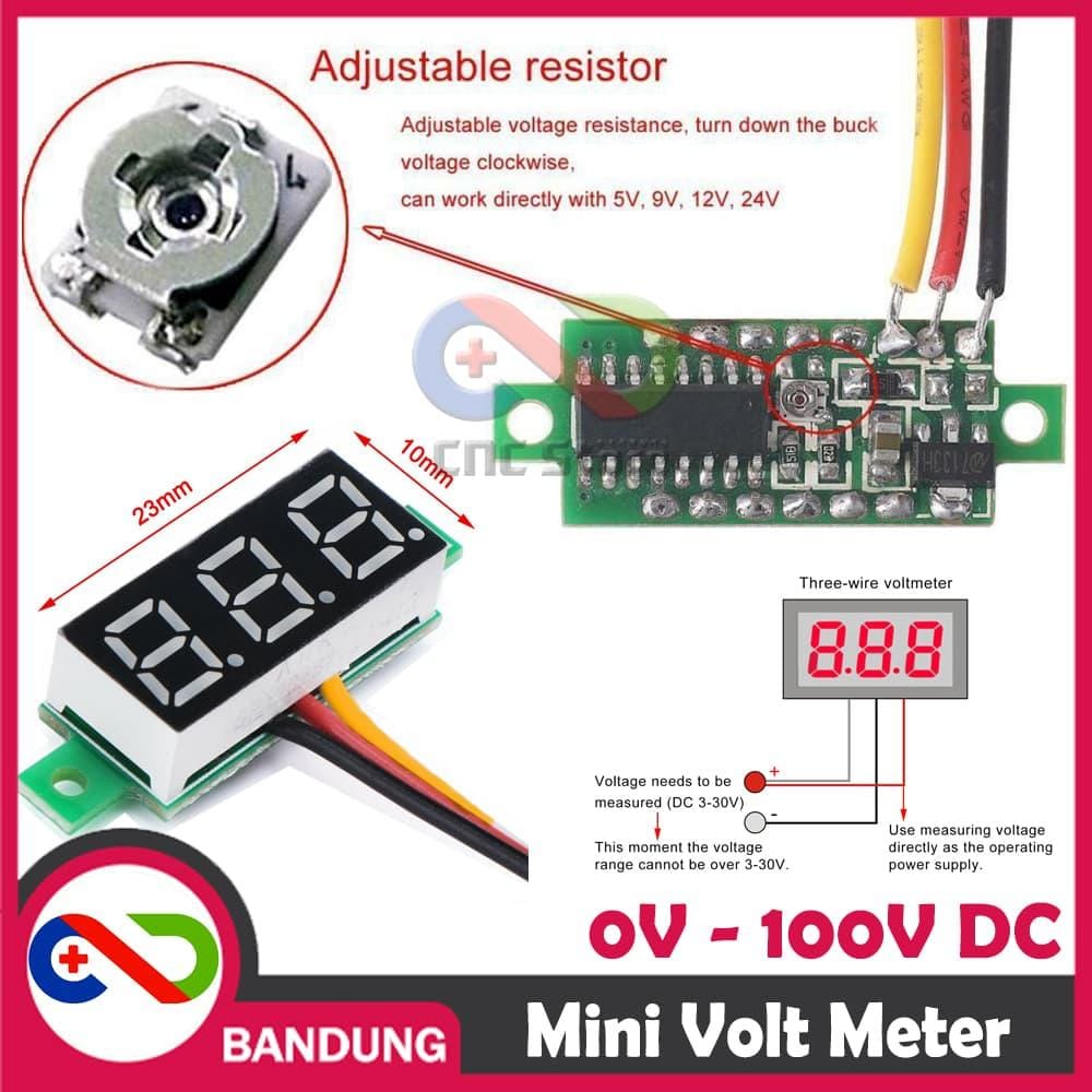– 1x MINI VOLTMETER VOLT PANEL METER DIGITAL LED 0-100V DC 3 WIRE 0.28” RED