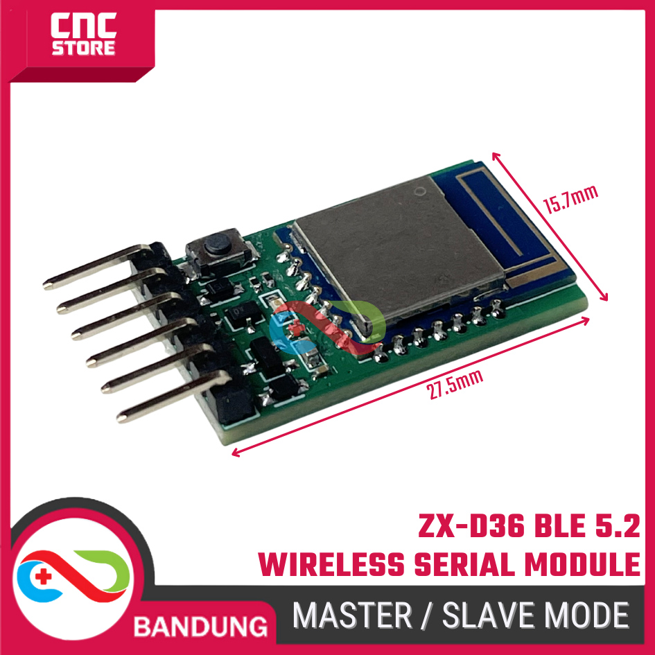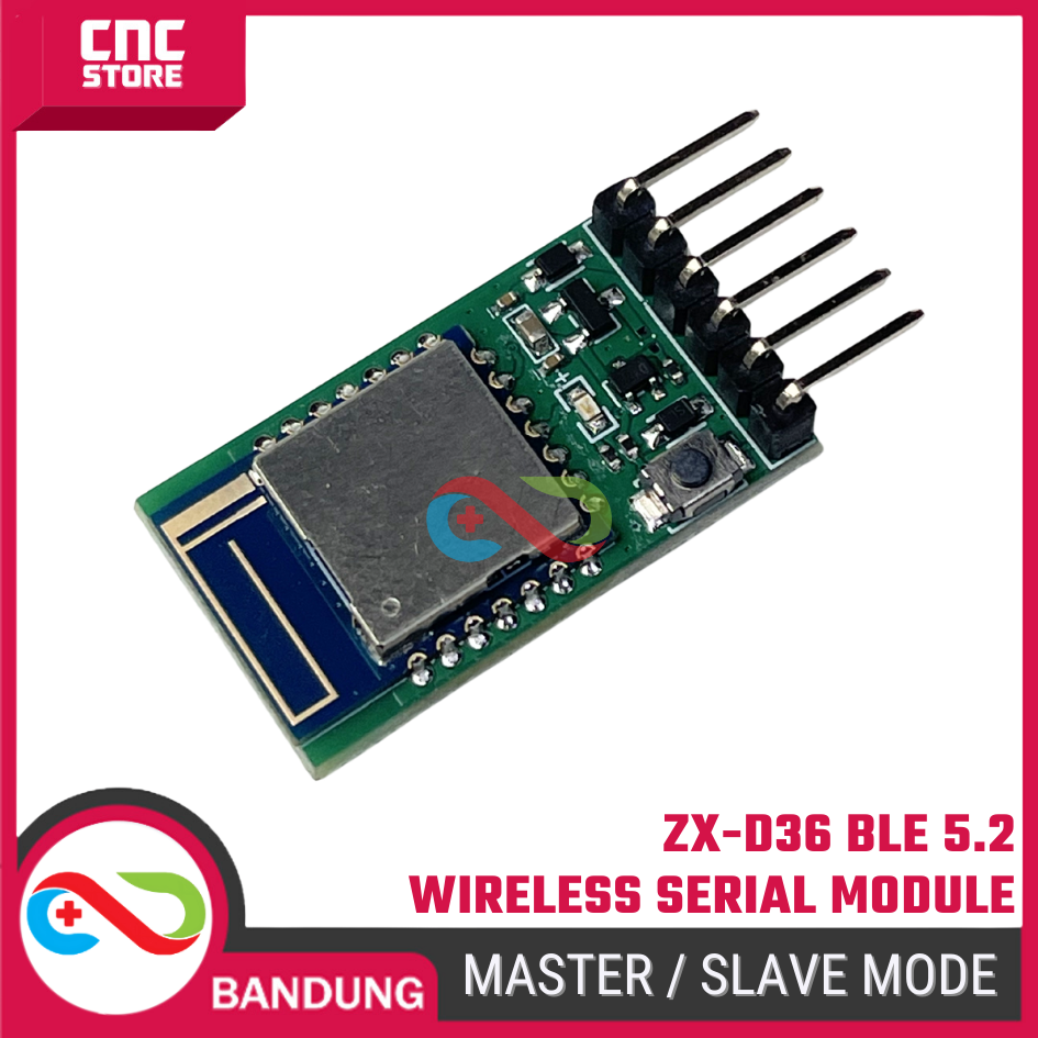 ZX-D36 adalah modul Bluetooth Low Energy (BLE) 5.2 yang mendukung komunikasi serial (UART) secara wireless dengan mode pass-through. Modul ini bisa bekerja sebagai Master maupun Slave, sehingga fleksibel untuk berbagai kebutuhan komunikasi antar mikrokontroler seperti Arduino, ESP32, STM32, dan lainnya.