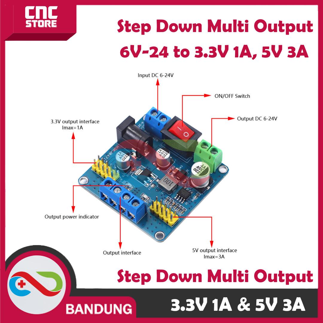 MODUL DAYA MULTY OUTPUT 6V-24 TO 3.3V 1A DAN 5V 3A STEP DOWN MODULE DAYA POWER SUPPLY