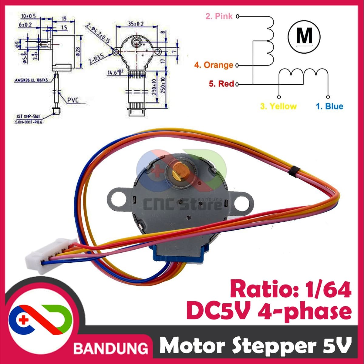 MOTOR STEPPER 5V 4 PHASE 5 WIRE KABEL 25CM 28BYJ-48 FOR ARDUINO DC5V (Motor