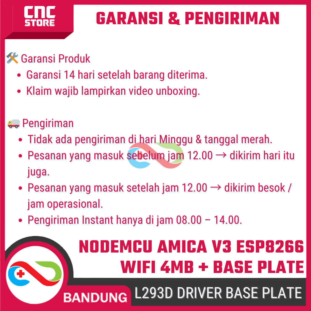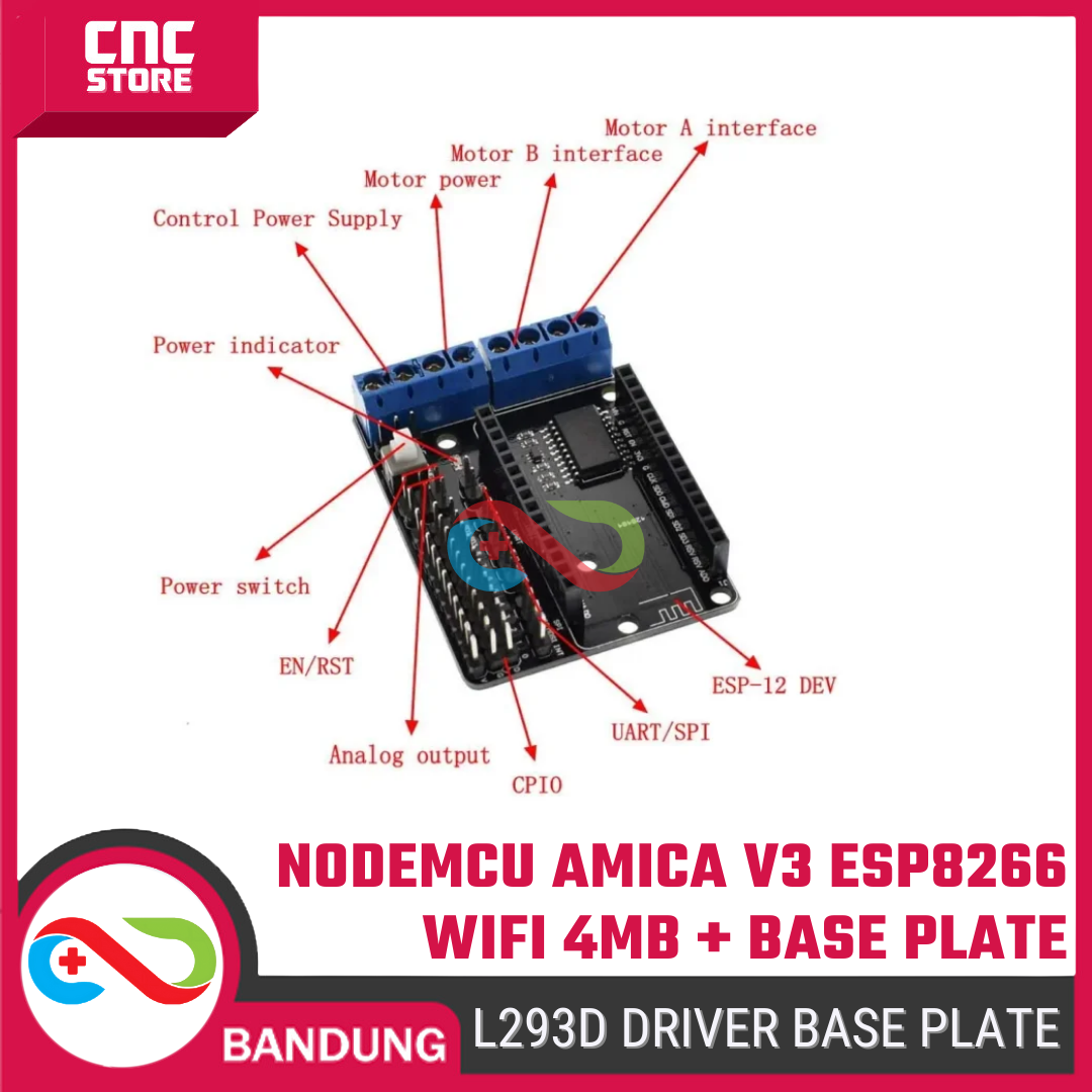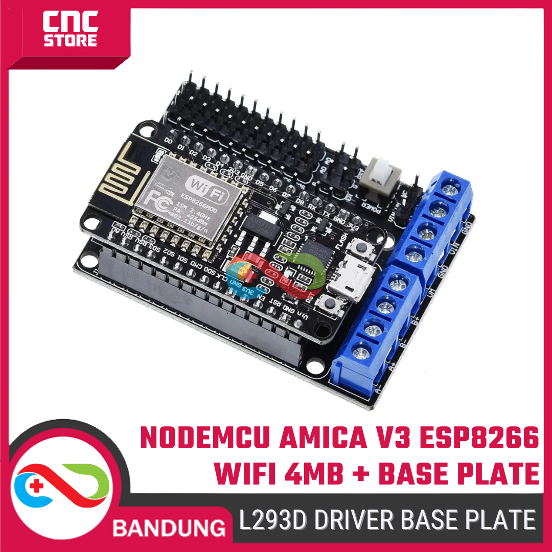 Paket ini terdiri dari NodeMCU Amica V3 (ESP8266) + Motor Driver Shield L293D, cocok untuk pemula sampai maker yang mau bikin: