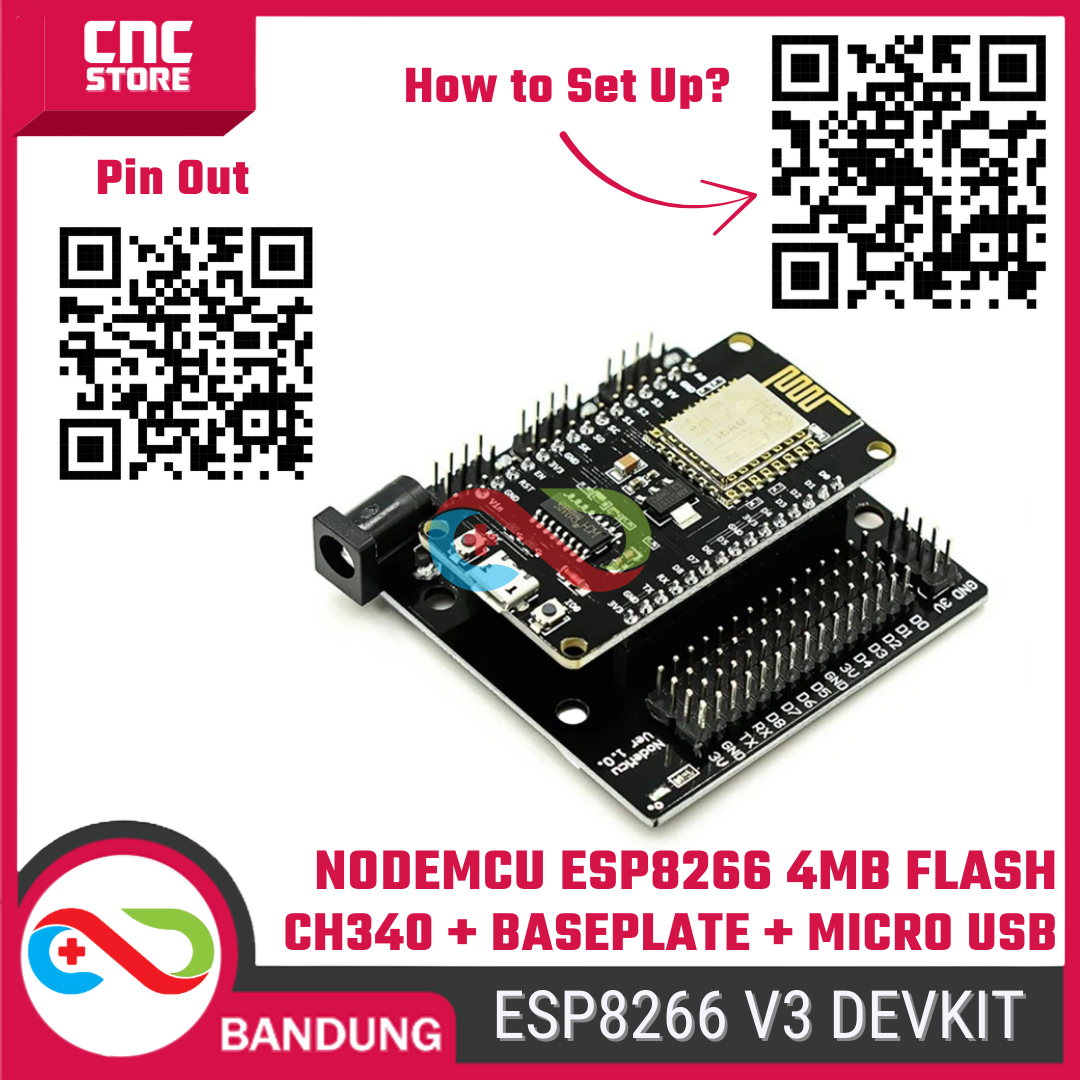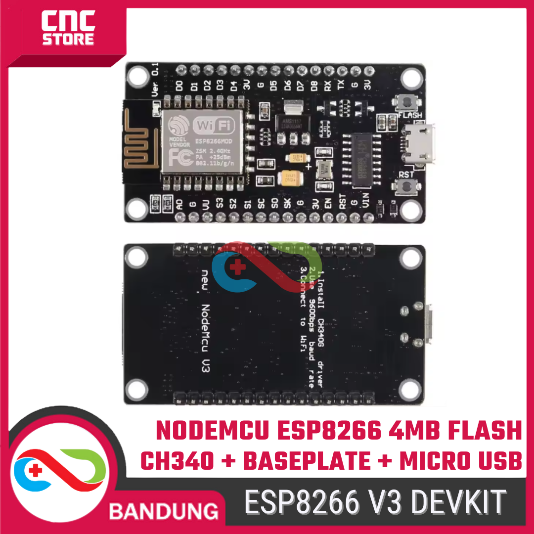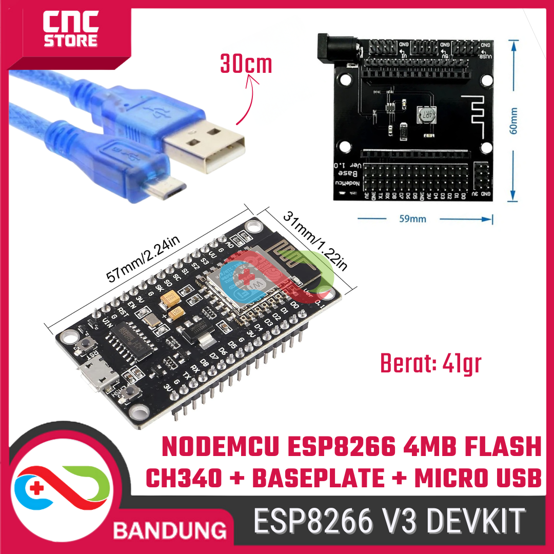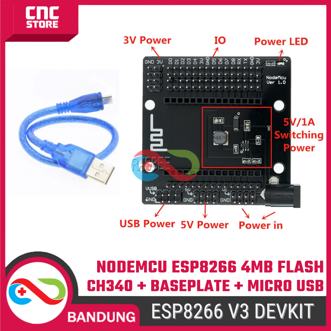 NodeMCU ESP8266 Lua WiFi V3 4MB CH340 – Development Board dengan Base Plate Expansion Board + Kabel Micro USB