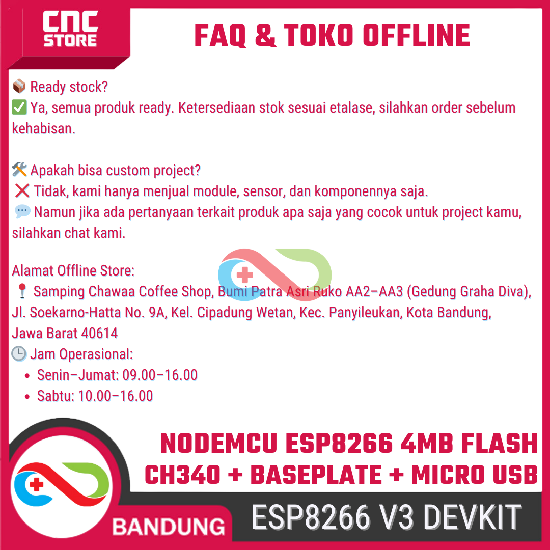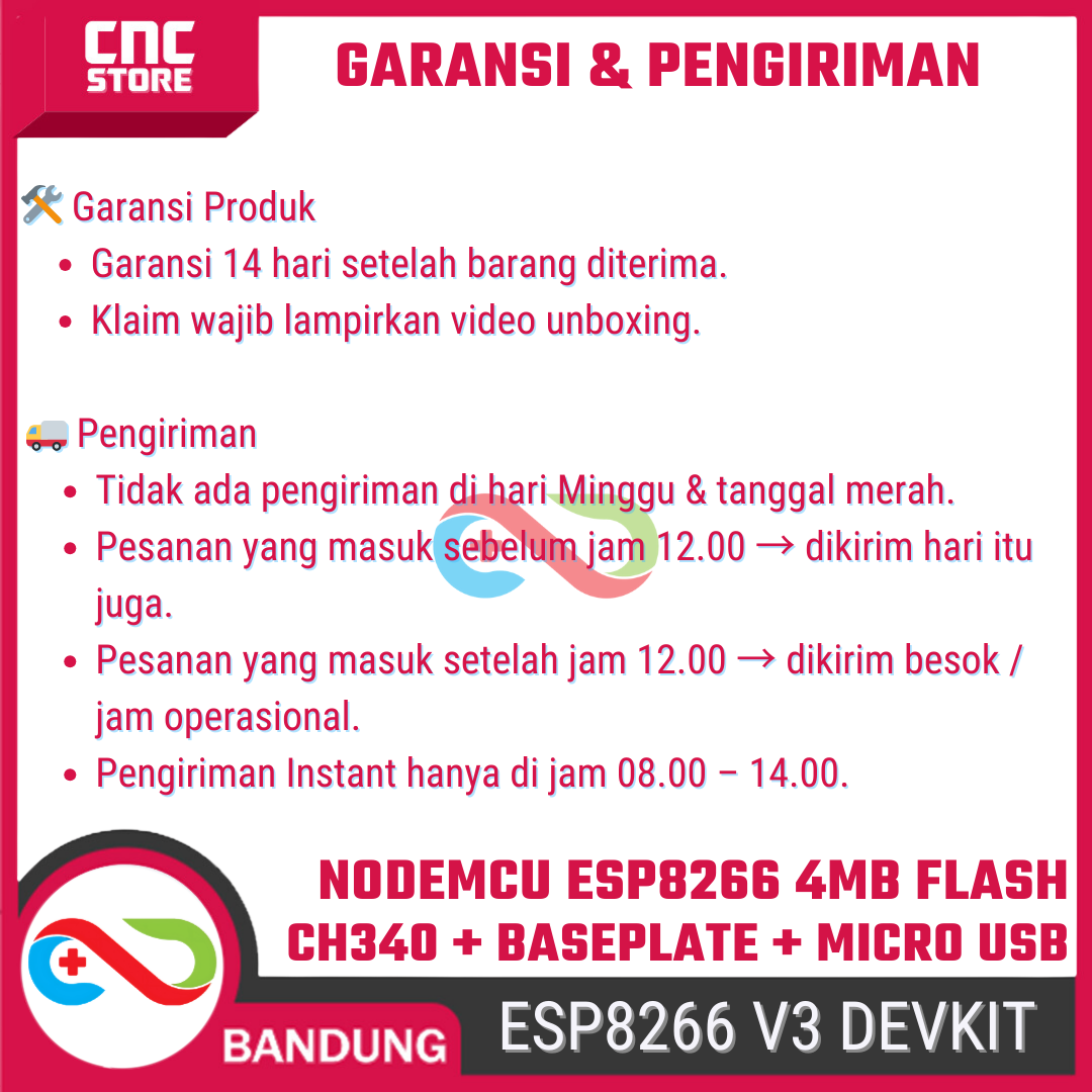 Bayangkan kamu ingin membuat sensor pintar, smart home, robot WiFi, atau proyek prototyping, tapi board yang ada terbatas fitur dan konektivitasnya. Dengan NodeMCU ESP8266 Lua WiFi V3 4MB CH340 + Base Plate Expansion Board, semua itu jadi mudah! Board ini sudah dilengkapi ESP8266 32-bit WiFi, 4MB flash, dan chip CH340, sehingga bisa langsung diprogram menggunakan Arduino IDE atau Lua.